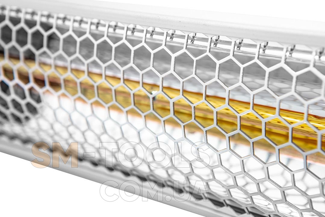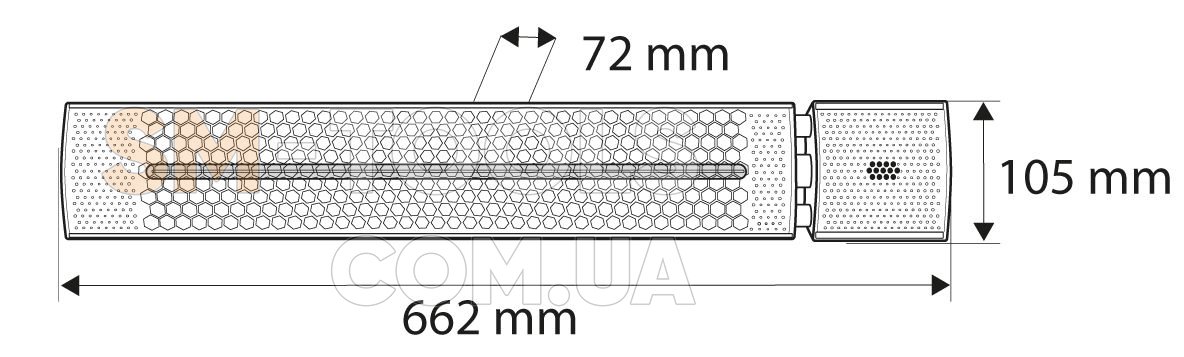 Характеризуется быстрым нагревом, благодаря чему тепло чувствуется сразу. Безопасная и экономическая альтернатива основному или вспомогательному отоплению. Нагревательный элемент представляет собой высококачественную золотистую галогенную лампу с радиусом действия до 18 м2. Время работы излучателя оценивается до 6000 часов. Корпус устройства имеет брызгозащиту IP65, что позволяет использовать его как в помещении, так и на улице. Современный источник тепла прост в установке и использовании.
