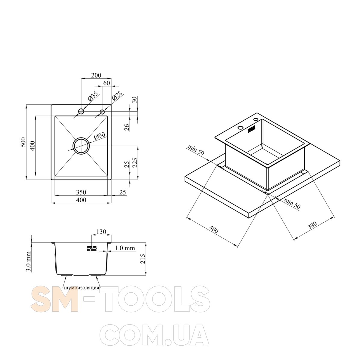 Характеристики Кухонная мойка Kroner KRP Gebürstet-4050HM (3,0/1,0 мм) CV029164: