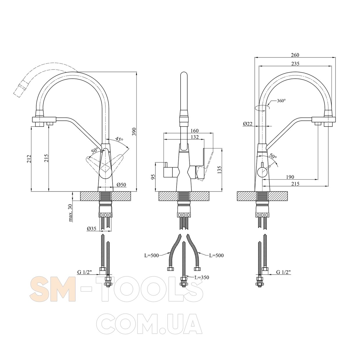 Характеристики Смеситель для кухни с подключением к фильтру Kroner KRP Edelstahl Klassisch - ESG03817GRA CV027937: