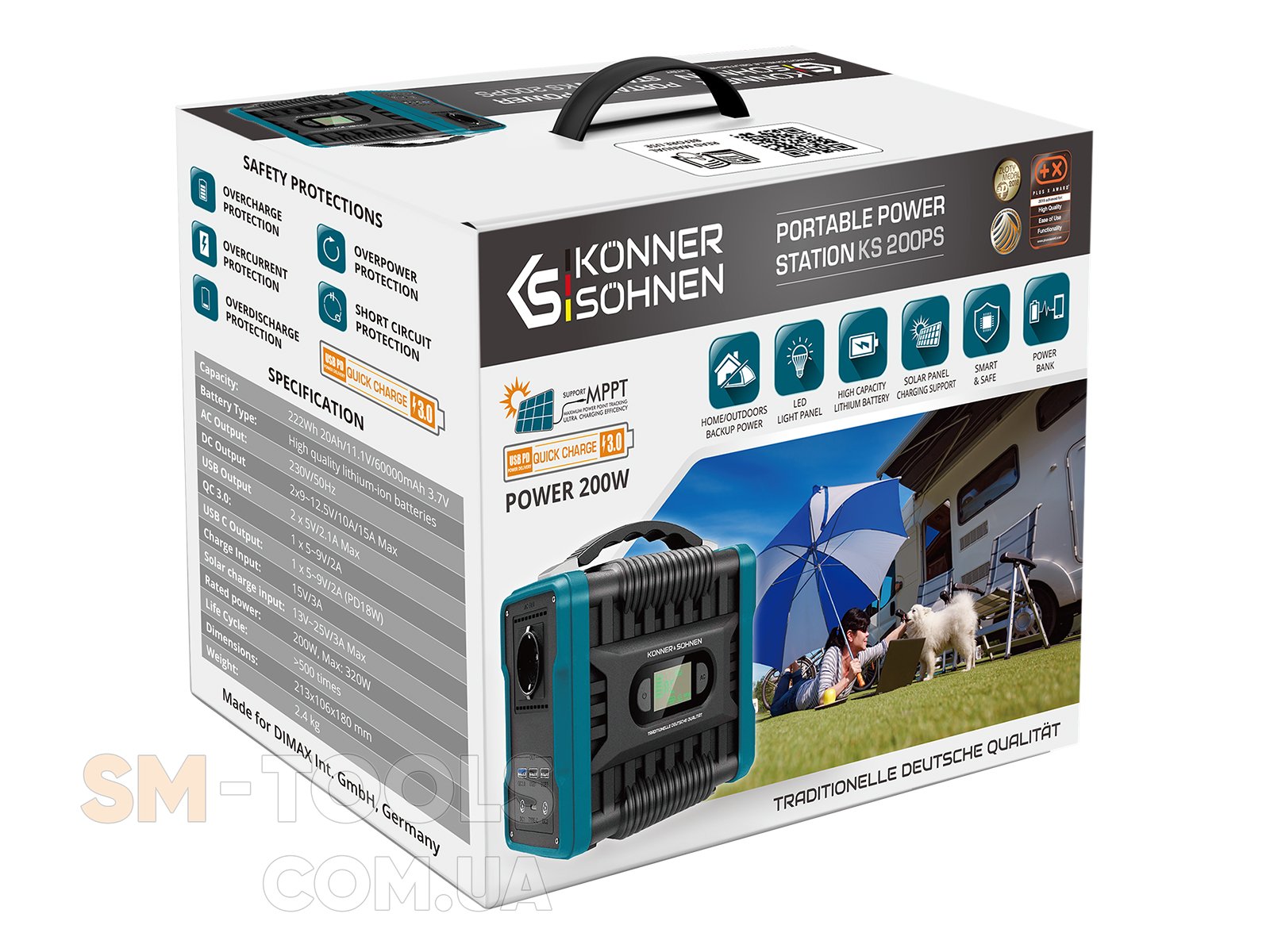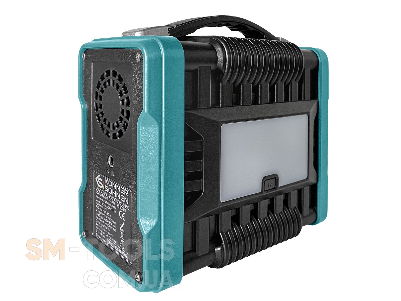 Все портативные зарядные станции Könner & Söhnen® оснащены технологией Power Delivery, обеспечивающей быструю зарядку аккумуляторов современных смартфонов и даже ноутбуков. Многопортовая, совместимая с множеством приборов и включает: 1 порт постоянного тока DC, 2 порта переменного тока AC, 1 порт быстрой зарядки USB PD Quick Charge 3.0, 2 порта USB 2.1, 1 порт USB Type-C, что удобно для питания различных электронных устройств .