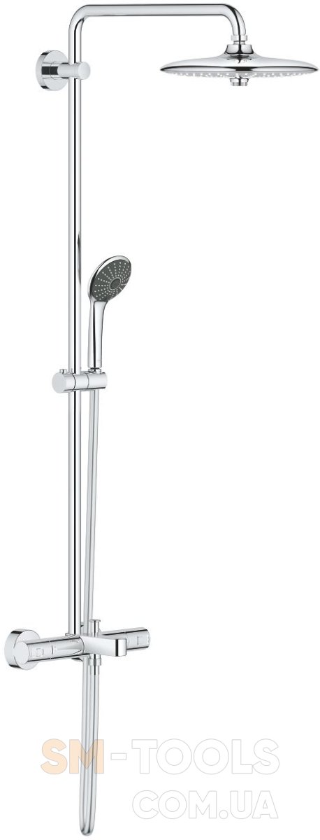 Для безупречной работы и удобства использования отлично подойдет душевая система GROHE Vitalio Joy 260 с термостатом и изливом для ванны.