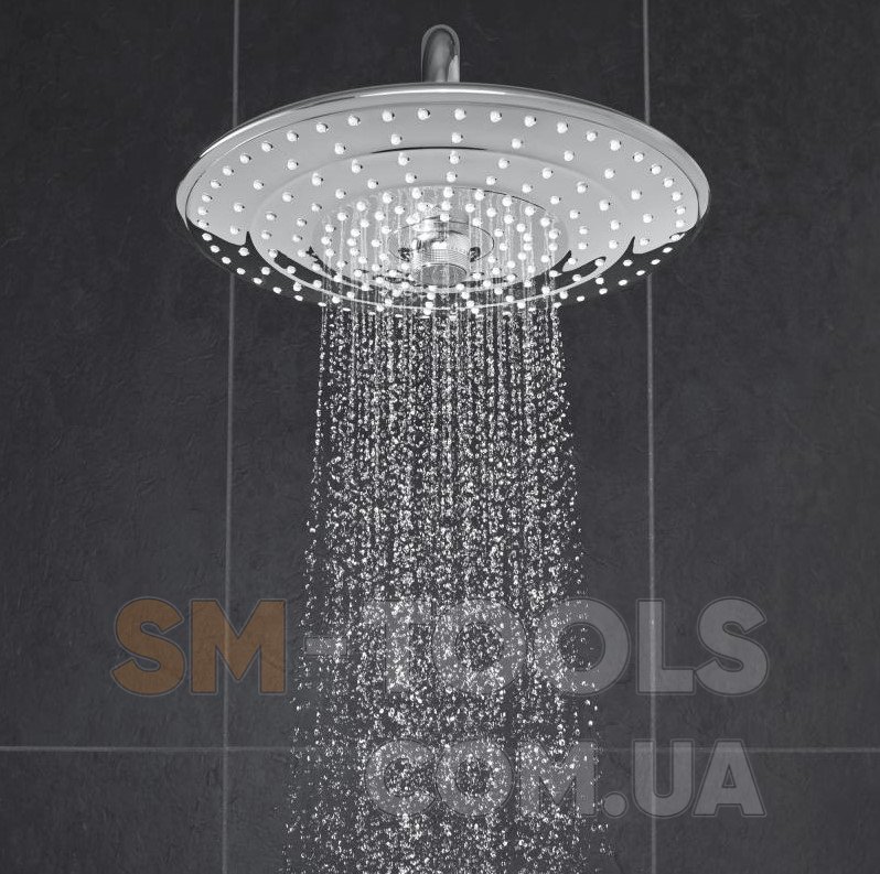 Технология GROHE EcoJoy сокращает расход воды до 9,5 л/мин без ущерба для комфорта. Мягкий режим Rain из верхнего душа в 260 мм смоет весь ваш стресс приятным потоком воды. Вдобавок к этому ручной душ Vitalio Joy 110 мм Massage с 3 режимами струи предложит режимы, которые подойдут к любому настроению: обволакивающий Rain, водосберегающий SmartRain и восстанавливающий Massage.
