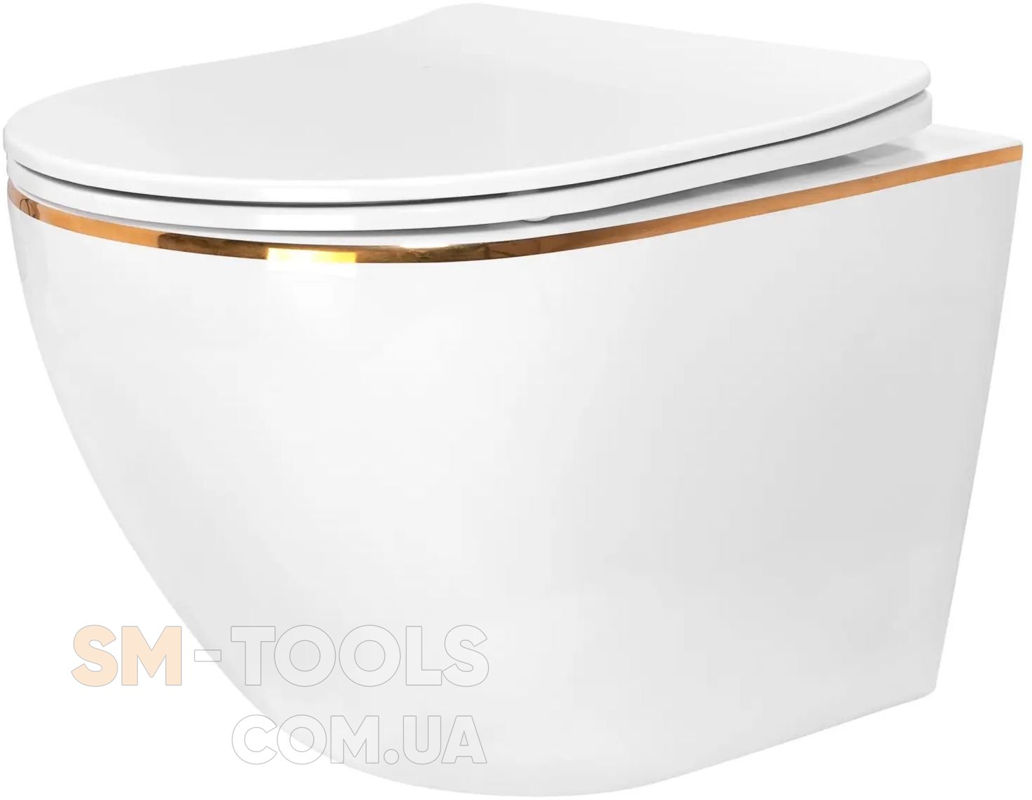 Подвесной унитаз REA Carlo White Mini Flat Gold Edge REA-C1222