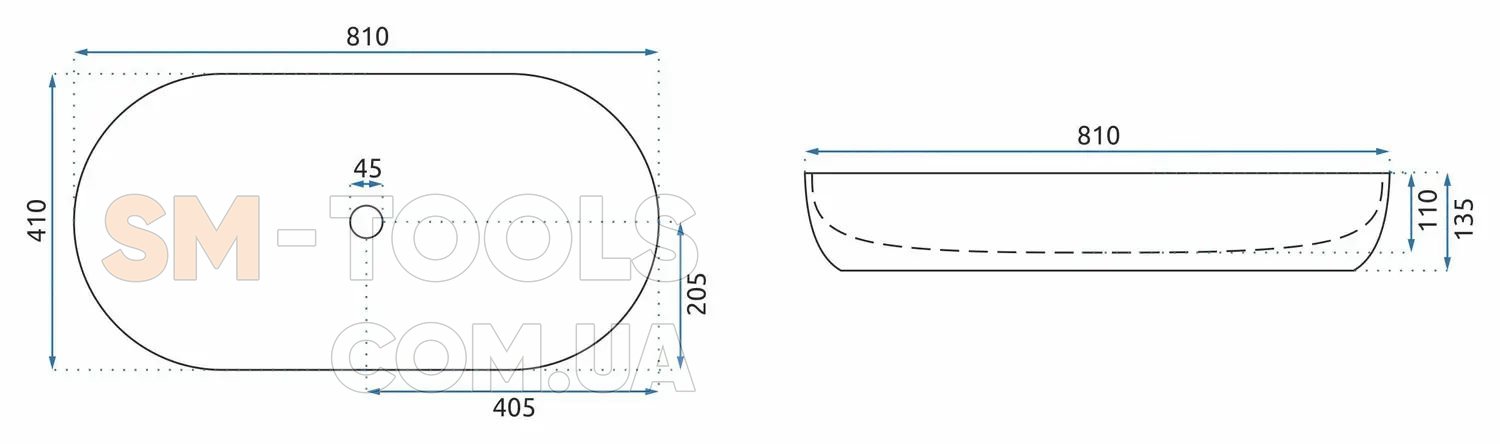 Наличие отверстия для перелива нет