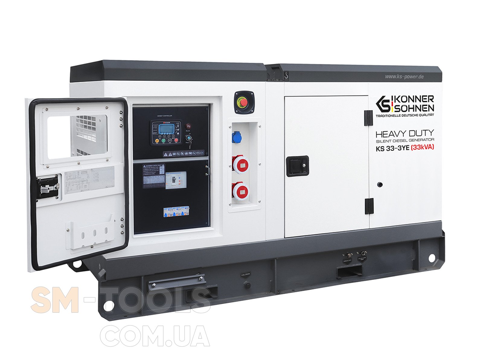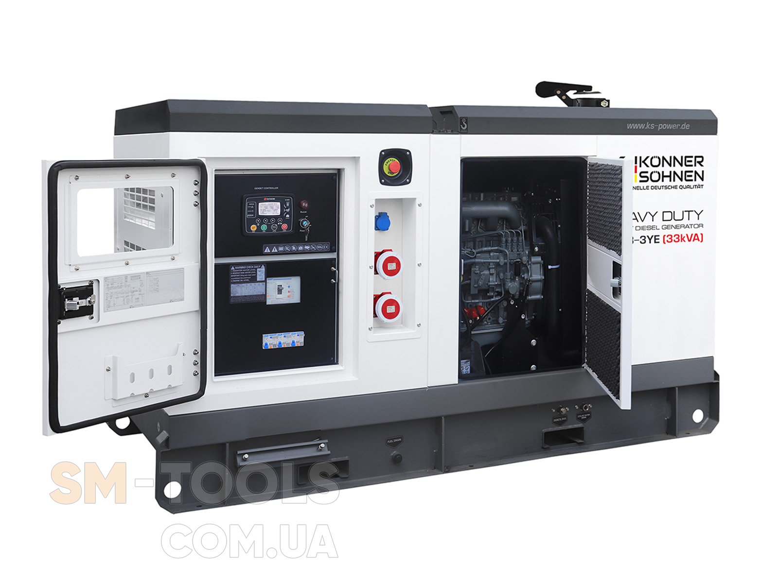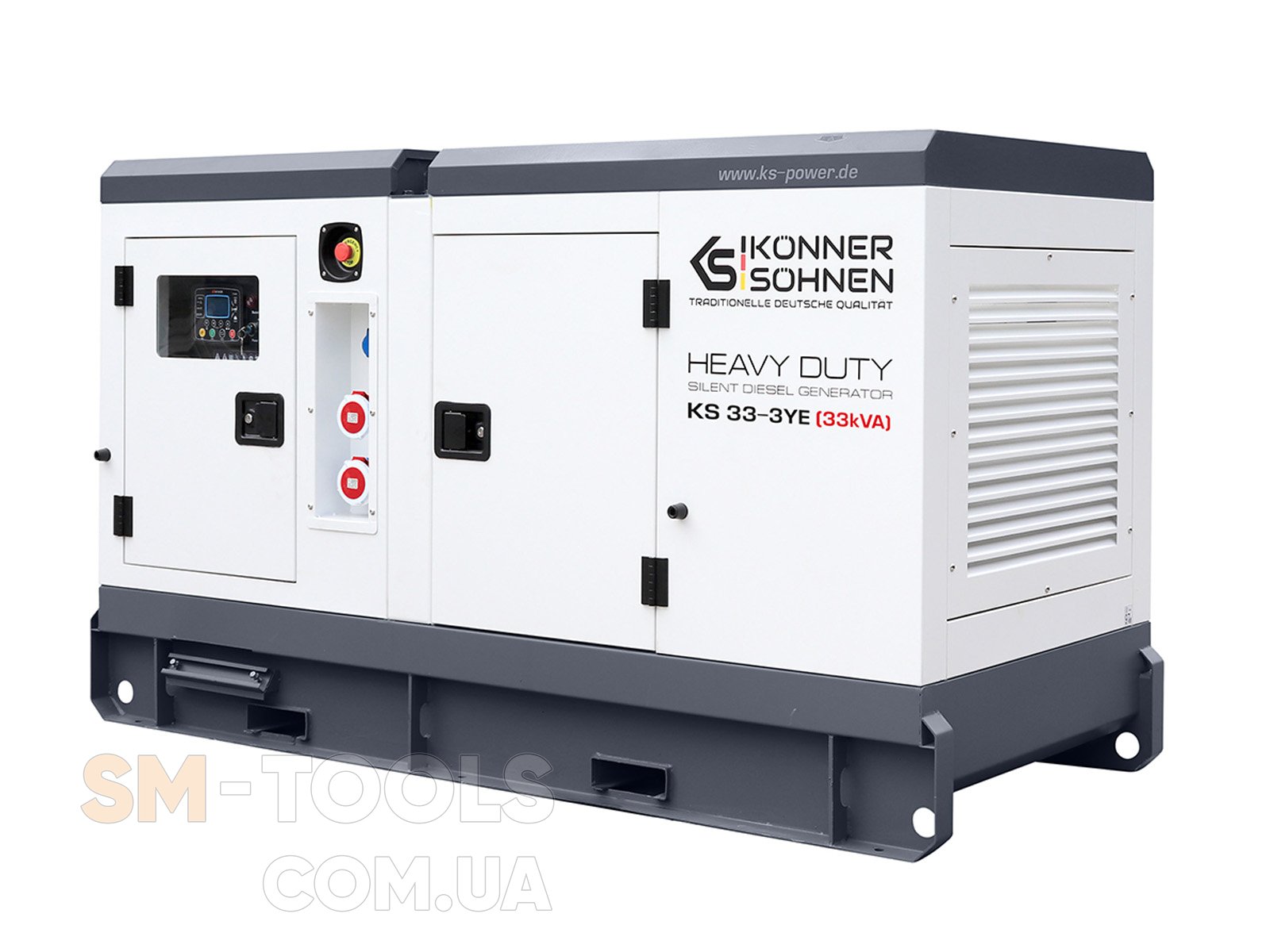 Дизельная трехфазная электростанция KS 33-3YE серии HEAVY DUTY немецкой торговой марки Könner & Söhnen – надежная генераторная установка максимальной мощностью 33 кВА.