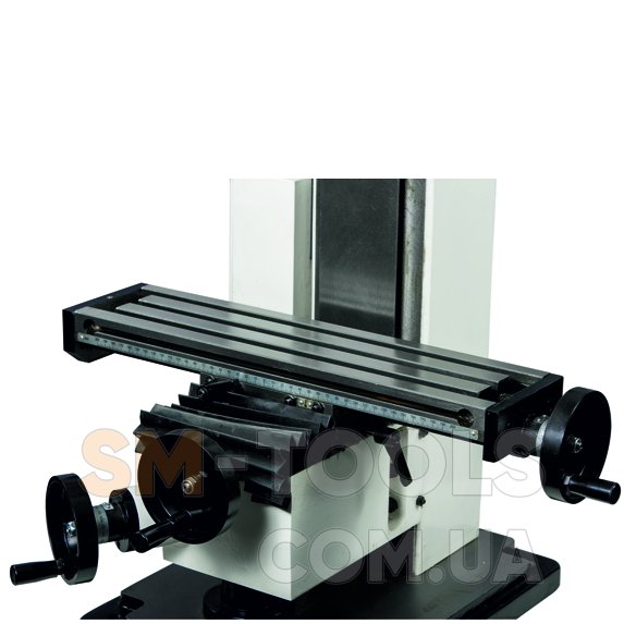 Станок имеет универсальную конструкцию, обладая прочным и устойчивым основанием. Настольное исполнение позволяет использовать станок с максимальной эффективностью. Модель рассчитана на работу со шпинделем под конус МК-3. Максимально допустимый диаметр режущих инструментов при сверлении составляет 16 мм. Допустимый диаметр торцевой фрезы для работы на станке – 63 мм. Ход пиноли у этой модели отсутствует. Вылет шпинделя составляет 265 мм. Станок комплектуется сверлильным патроном, оправкой под горизонтальный шпиндель.