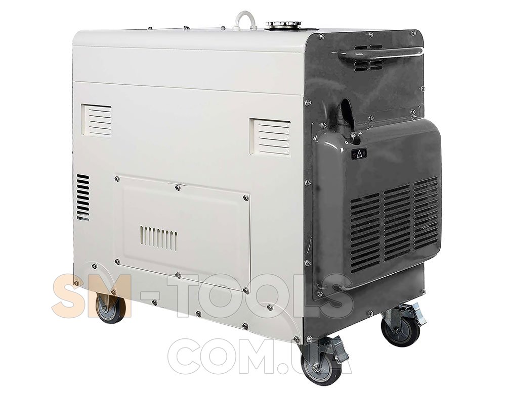 Кожух генератора оборудован транспортировочным комплектом из 4 колес для удобного передвижения агрегата.