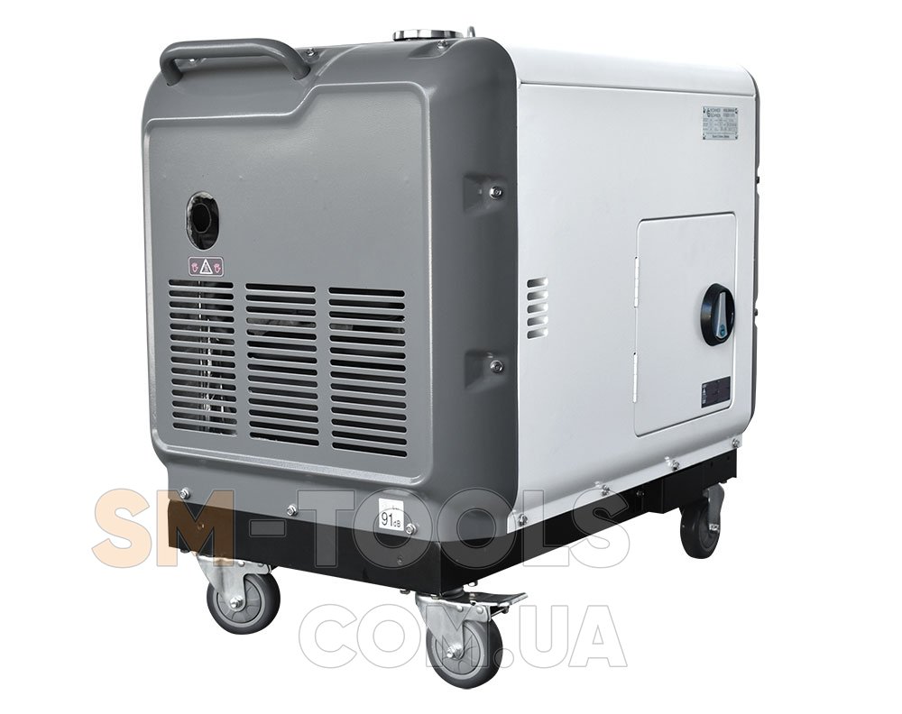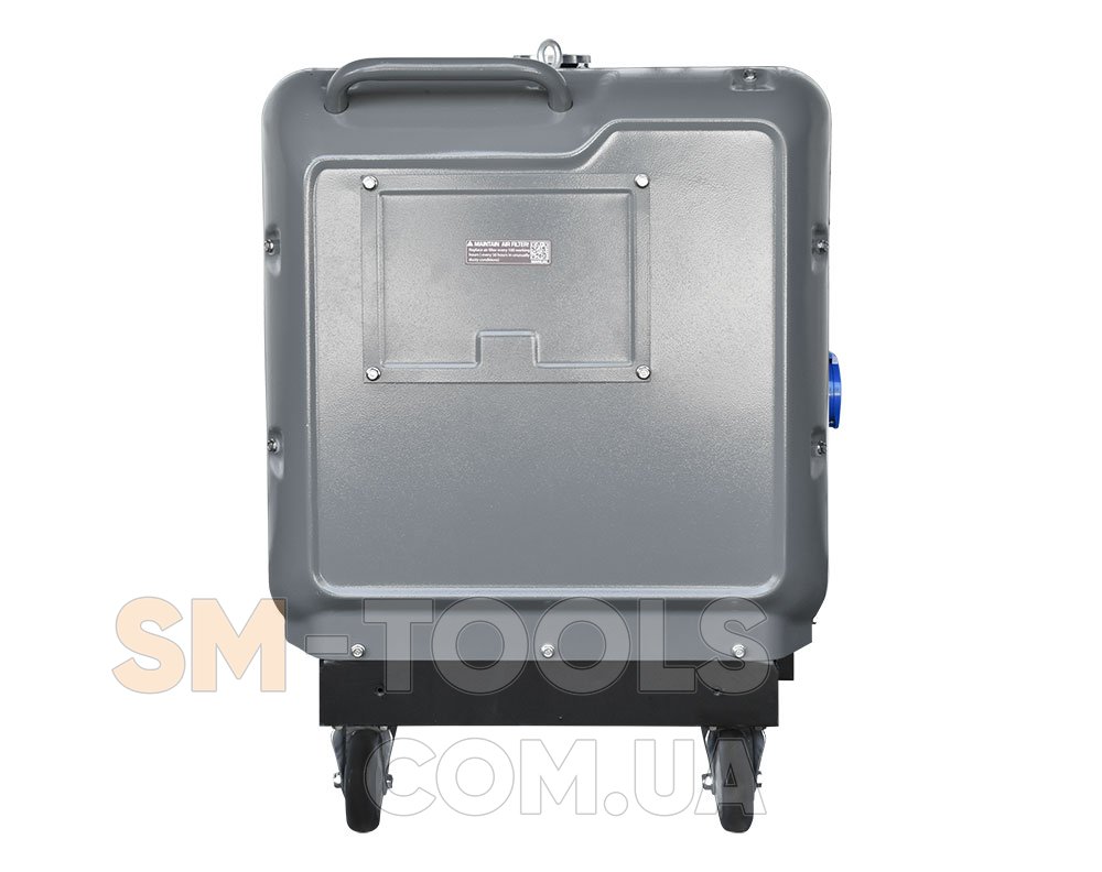 Кожух генератора оборудован транспортировочным комплектом, состоящий из 4 колес и 2 ручек для удобного передвижения агрегата.