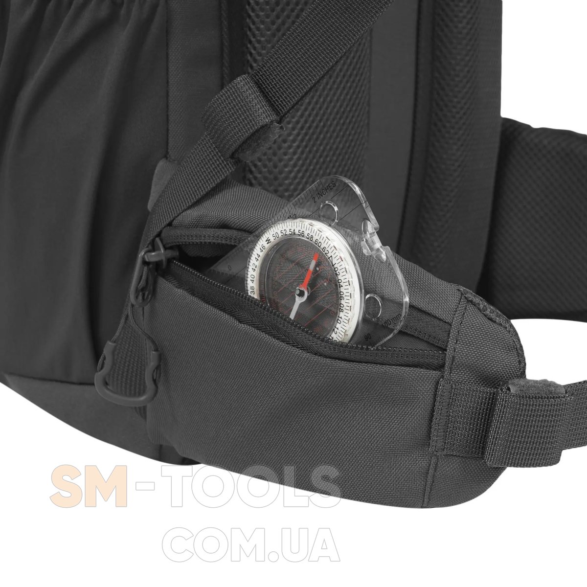 - Кроме основного отделения, двух боковых эластичных карманов, фронтального кармана и кармана сверху, этот рюкзак имеет систему креплений MOLLE для фиксации снаряжения, а также совместим с питьевой системой (гидратором).