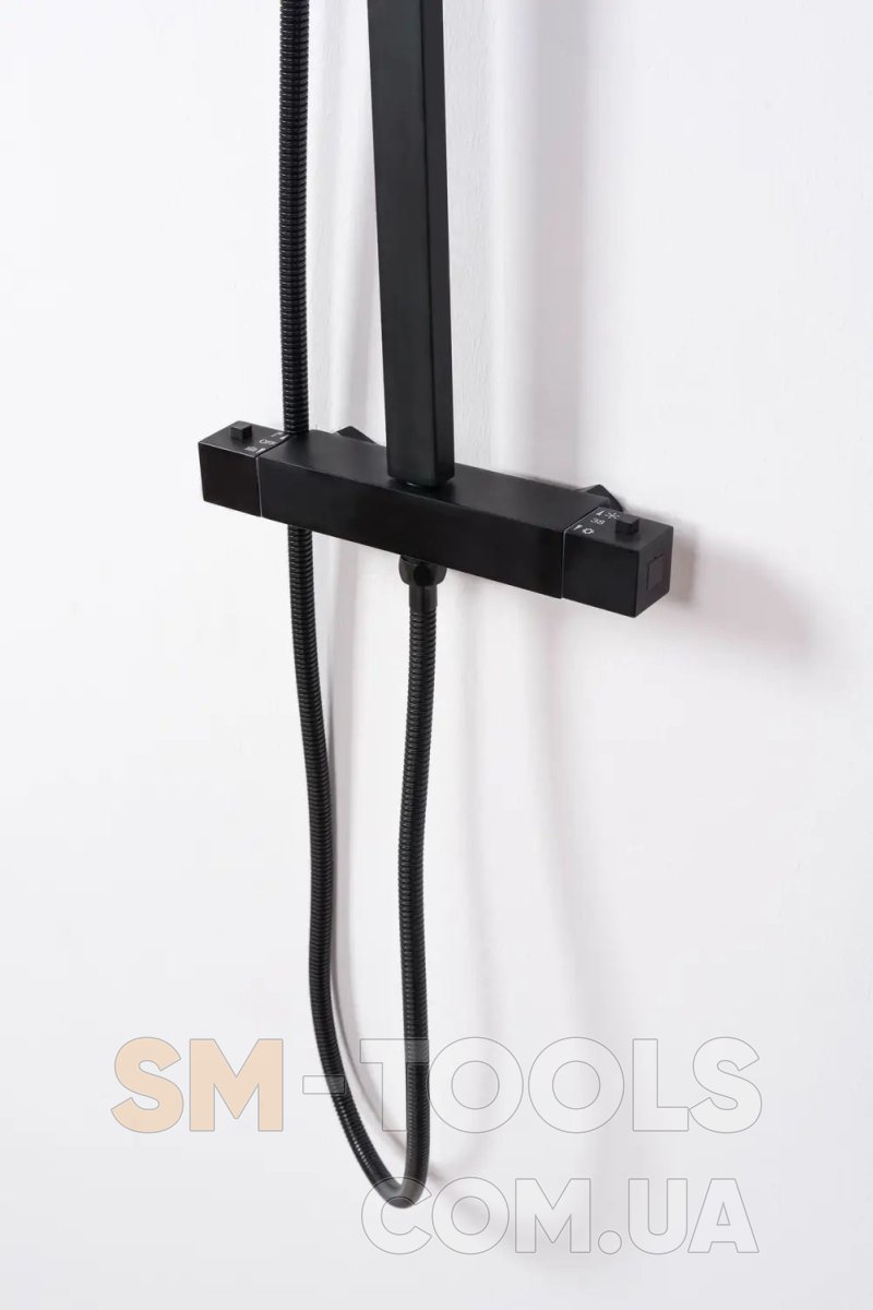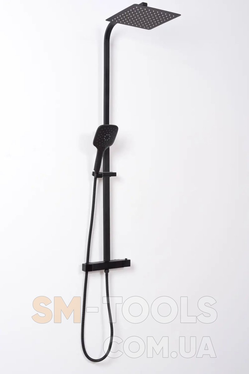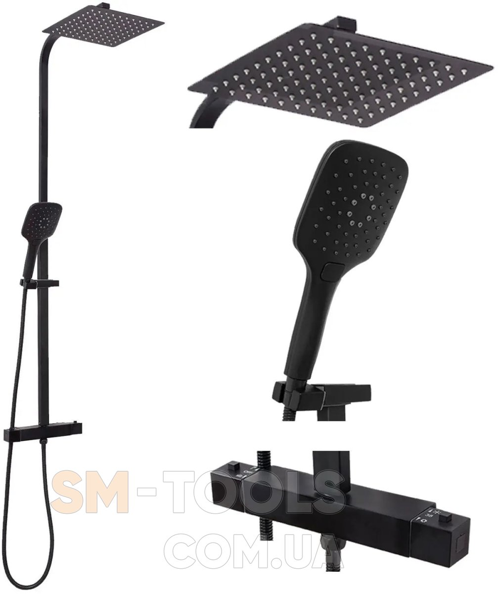 Душевой набор был разработан с учетом комфорта и функциональности. При производстве наших термостатов мы использовали передовые и лучшие технологии, чтобы гарантировать максимальную безопасность и комфорт в повседневном использовании. Современный и уникальный дизайн и высокое качество используемых материалов гарантируют долговечность и надежность на долгие годы. Представленный набор с термостатом, оснащен системой форсунок, которая состоит из тропического душа, ручного душа и крана. Они покрыты специальным покрытием, предотвращающим образование накипи и облегчающим очистку. Душевой набор отличается элегантным дизайном, сочетающим эстетические и функциональные ценности. Все выполнено в черных тонах и имеет матовую отделку, что делает его универсальным выбором для любой ванной комнаты, независимо от стиля оформления.