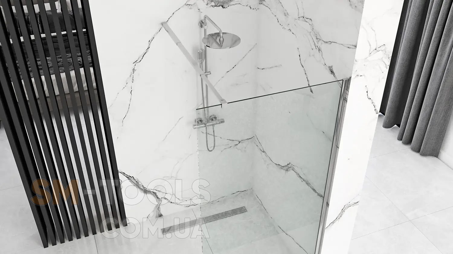 Представляем вам красивую, чрезвычайно функциональную и современную перегородку для душа. Это продукт, который идеально заполнит пространство вашей ванной комнаты, сохранив безупречный внешний вид и эстетику интерьера. Стена приспособлена для установки на душевой поддон или с линейным сливом. Изготовлен из качественного закаленного стекла. Благодаря специальной стадии производства он прочный и легко моется.