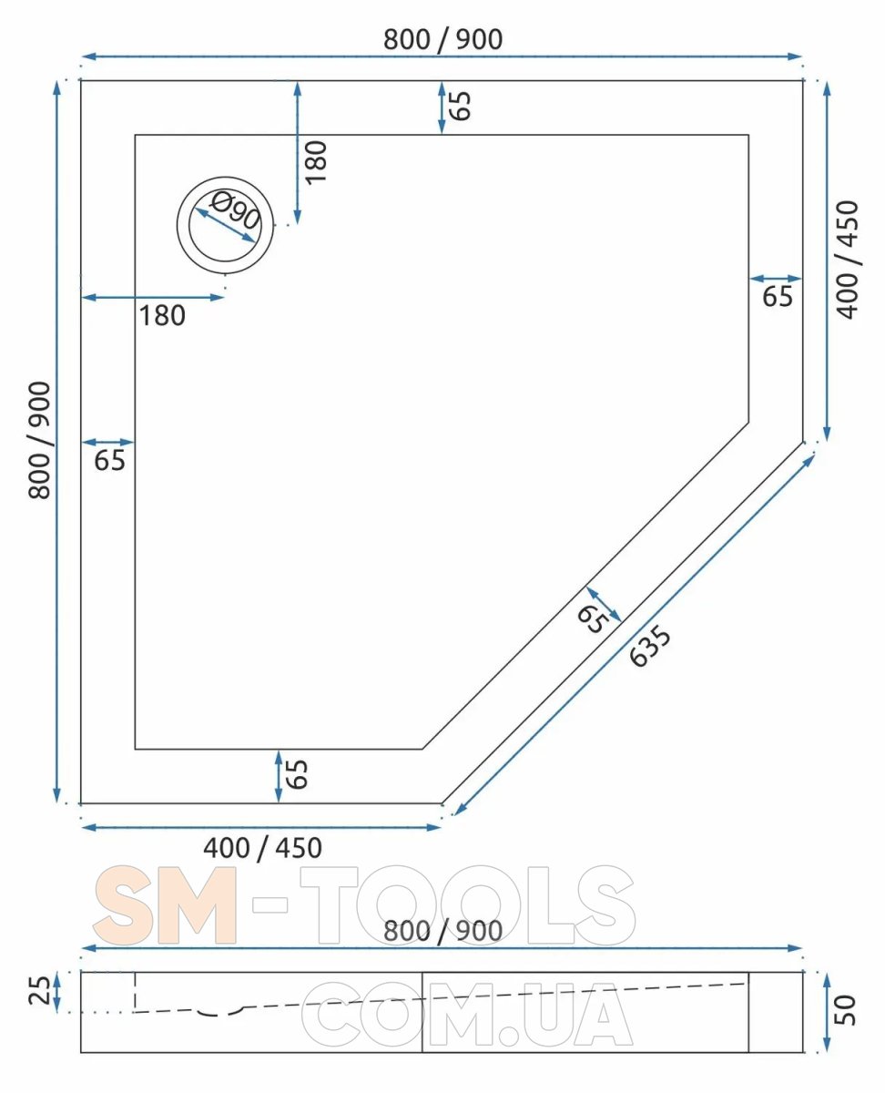 Размер поддона (см) 80X80