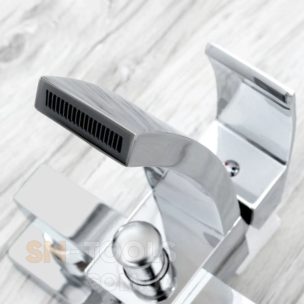 Представляем вам красивый, чрезвычайно функциональный и современный смеситель. Это изделие, которое идеально заполнит пространство вашей ванной комнаты, сохранив безупречный вид и эстетику интерьера. Смеситель приспособлен для установки на ванну или полку рядом с ней. Он был изготовлен из латуни, покрытой тройным слоем покрытия. Благодаря специальной стадии производства он прочный и легко моется.