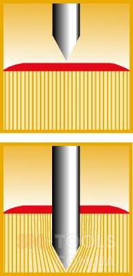 - Щетинки, що самовідновлюються: коли вістря стикається з дошкою, волокна роз’єднуються, дозволяючи вістрям проникнути. Коли вістря видаляється, волокна автоматично відновлюються у вихідне положення.