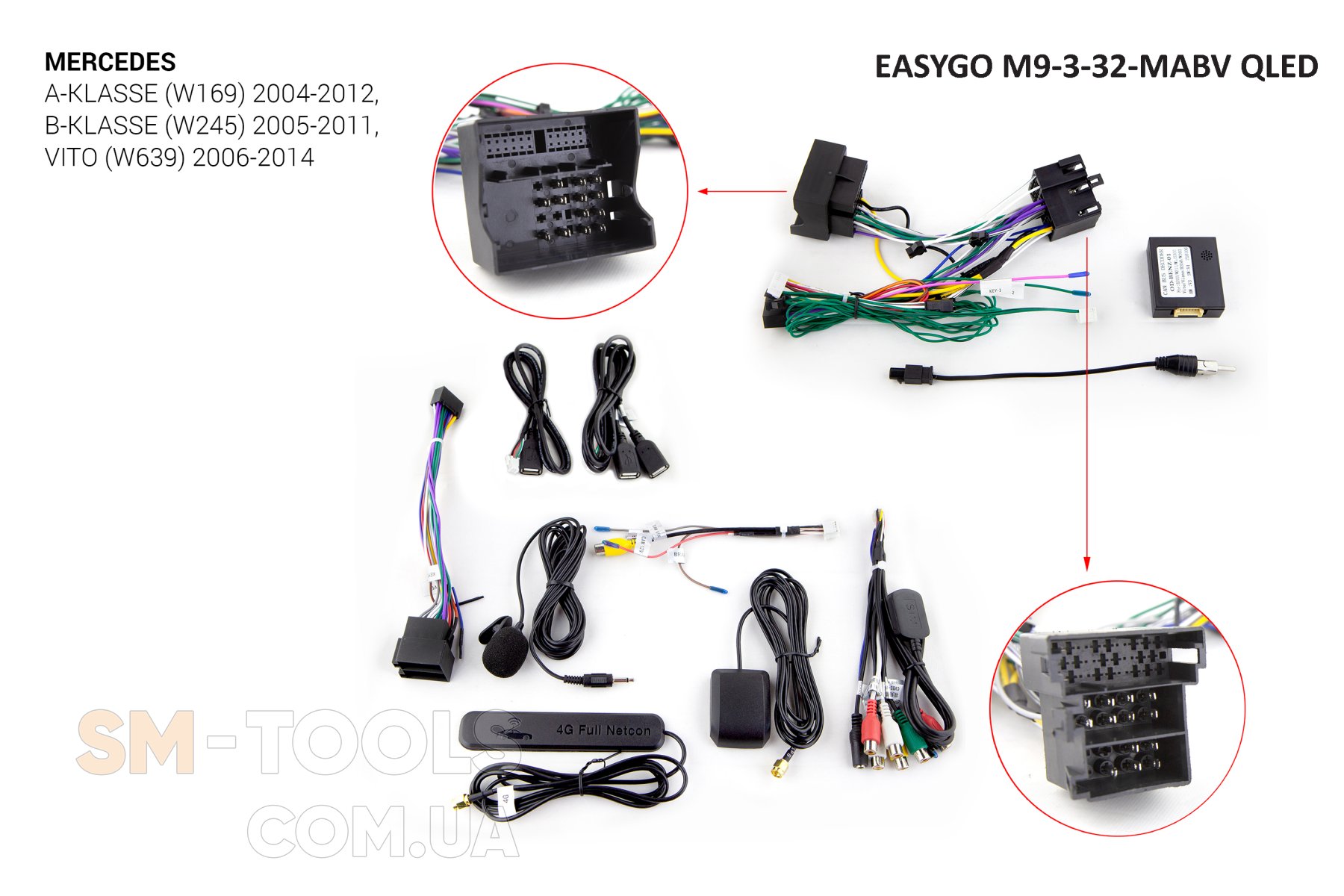 Штатная мультимедийная система EasyGo M9-3-32-MABV QLED предназначена для установки в автомобиль Mercedes A-klasse (W169) 2004-2012, B-klasse (W245) 2005-2011, Vito (W639) 2006-2014.
