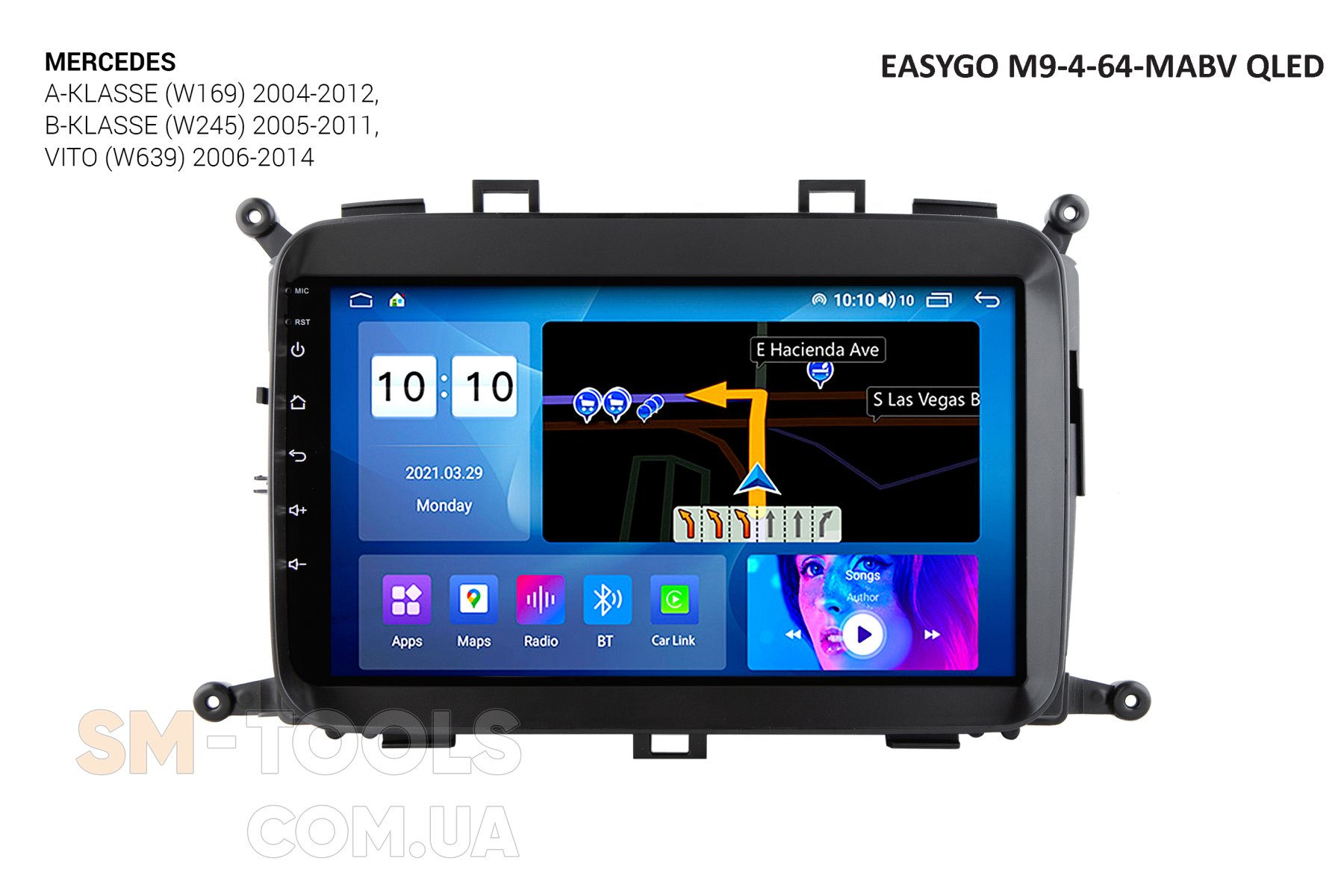 Штатная мультимедийная система EasyGo M9-4-64-MABV QLED предназначена для установки в автомобиль Mercedes A-klasse (W169) 2004-2012, B-klasse (W245) 2005-2011, Vito (W639) 2006-2014.