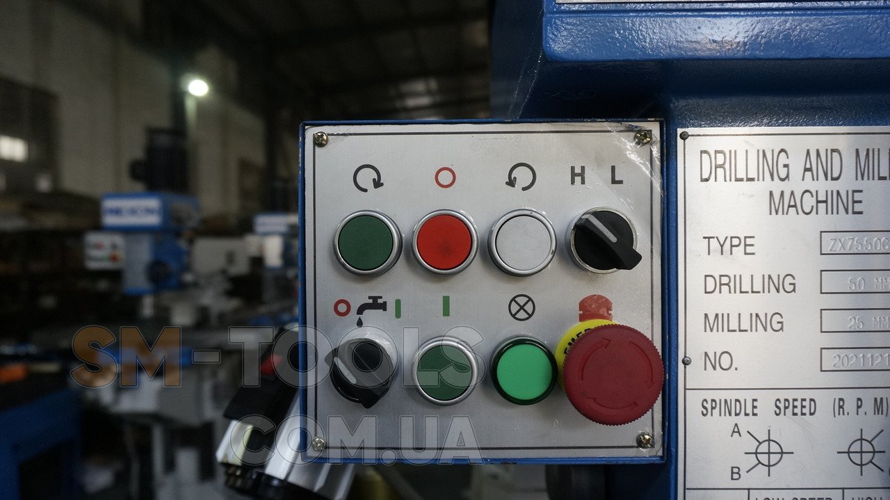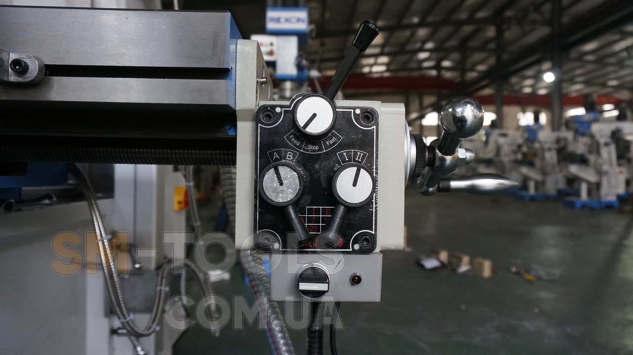Консольный фрезерный станок 9craft 7550V предназначен для вертикальной фрезеровки и сверления деталей. Вертикальная фрезерная голова имеет возможность поворота от 0 до +-45 градусов относительно оси вращения. Стол доступен в размерах 800х240мм и 1000х240мм. Также при заказе возможно оснастить данный станок функцией поворота стола. Рабочий стол имеет возможность автоподачи по оси Х, мощность двигателя автоподачи составляет 370 ватт. Мощность двигателя вертикальной фрезеровки составляет 1500 ватт. Напряжение питания 380 в. Данный станок является промышленной моделью и может использоваться в серийном и мелкосерийном производстве изделий из различных металлов и прочих материалов. Шпиндель вертикальной фрезеровки имеет 8 скоростей вращения, которые изменяются при помощи изменения передаточного числа в механической коробке передач. Рабочий свет и система подачи СОЖ входят в стандартную комплектацию. Характеристики: · КМ4 конус шпинделя · 70-420 мм – расстояние от шпинделя до стола · 115-1750 об/мин - скорость вращения шпинделя вертикальной фрезеровки · 120 мм – ход шпинделя · 50 мм – максимальный диаметр сверления при автоподаче · ±45° - наклон головы · 800х240 мм – размер стола (1000х240 мм опция) · 400 мм – продольный ход стола · 230 мм – поперечный ход стола · 350 мм – вертикальный ход стола · 3 Т-паза стола · 14 мм – ширина Т-паза стола · 60 мм – расстояние между Т-пазами · 1500 ватт – мощность двигателя вертикальной фрезеровки · 370 ватт – мощность двигателя автоподачи по оси Х · 40 ватт – мощность двигателя насоса СОЖ · 12 л – Объем емкости бака СОЖ Срок производства – 30 дней Стандартная комплектация: · Сверлильный патрон · Фрезерный патрон · Линейка · Оправка · Переходная втулка · Горизонтальная фреза (22 + 27 мм) · Тиски 160мм · Гаечные ключи · Автоподача по оси Х · Система охлаждения · Масляный поддон · Галогенная рабочая лампа Дополнительная комплектация: · УЦИ · Защитный экран шпинделя · Тиски · Цанговый патрон и цанги · Автоподача по оси Y · Автоподача по оси Z · Рабочий стол увеличенного размера