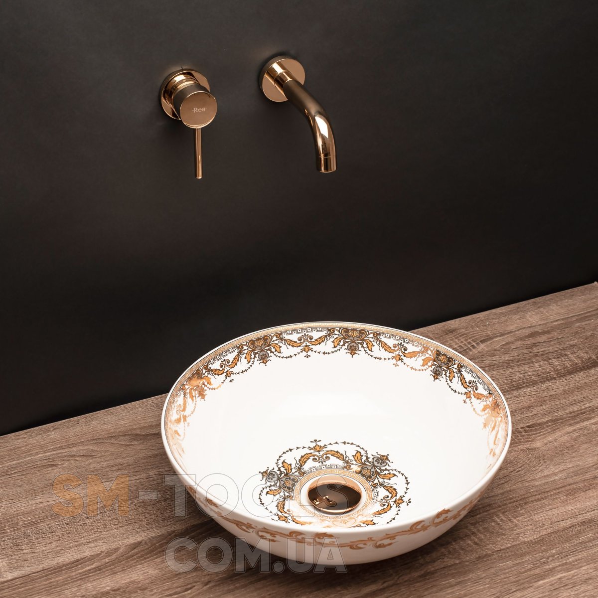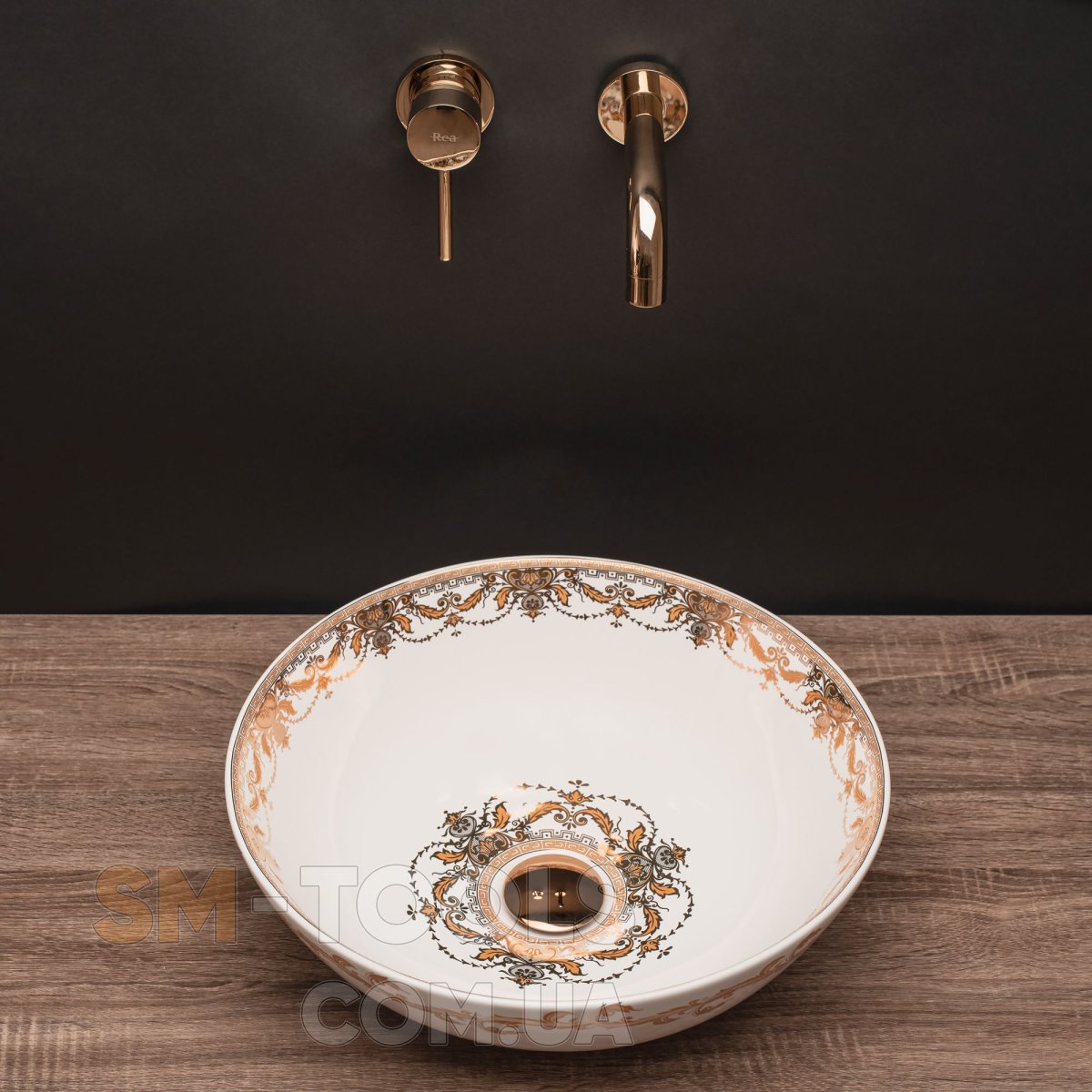 Умывальник (раковина) REA ELITA накладной белый/золото