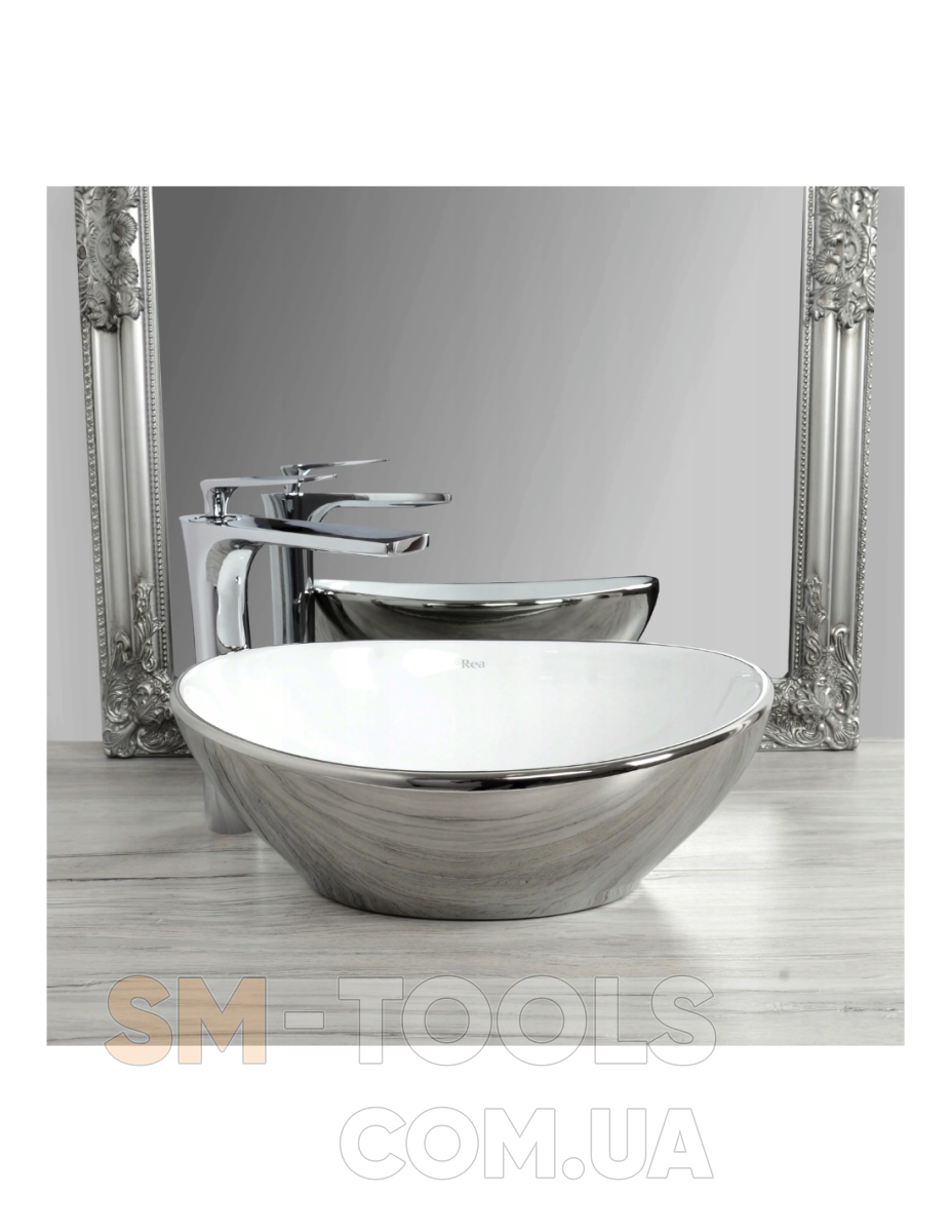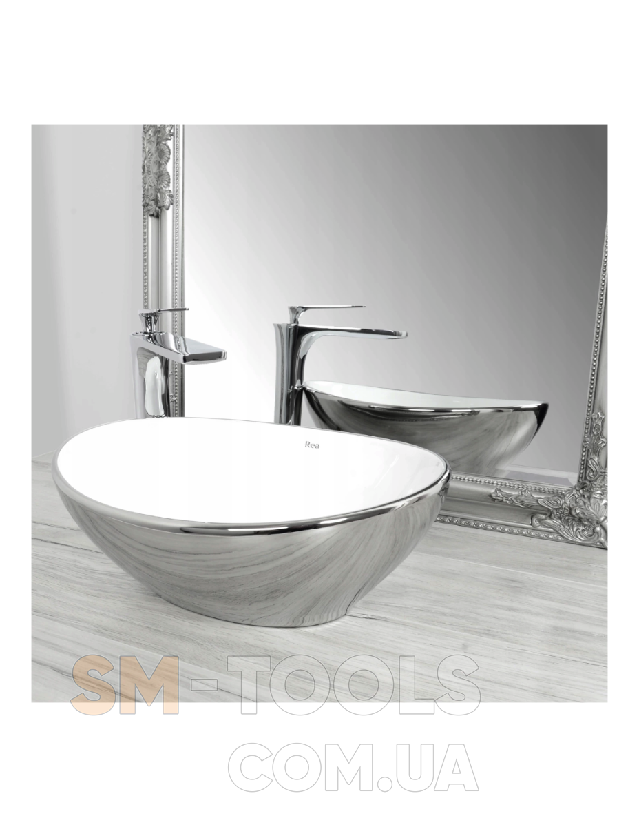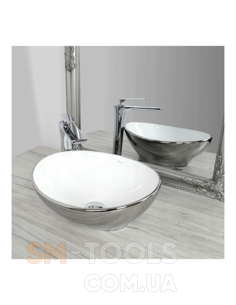 Описание Умывальник (раковина) REA SOFIA SILVER / WHITE накладной серебристый / белый: