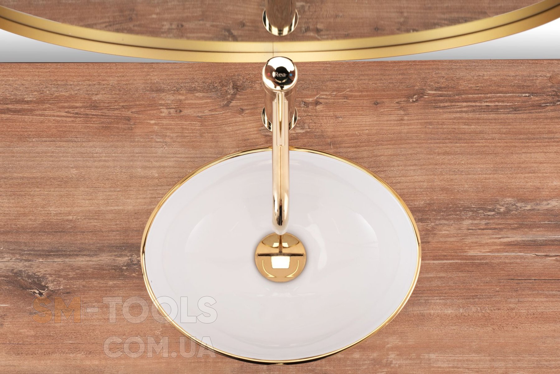 Умывальник (раковина) REA SOFIA MINI WHITE GOLD накладной белый/золото