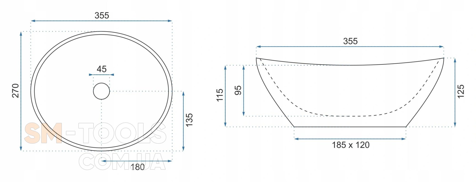 Характеристики Умывальник (раковина) REA SOFIA MINI WHITE GOLD накладной белый/золото: