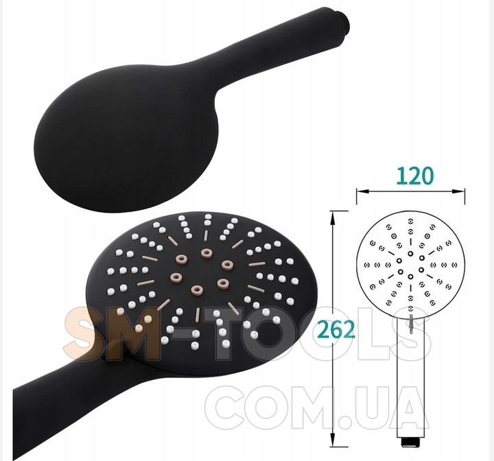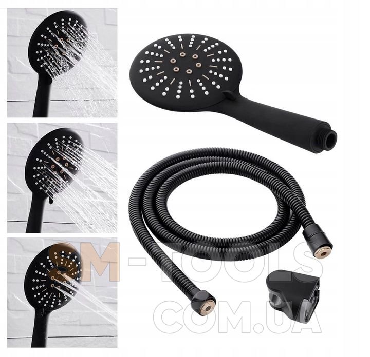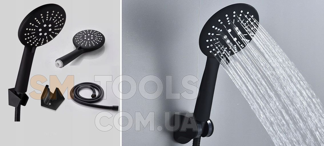 Описание Душевая лейка REA BLACK + шланг + держатель черный: