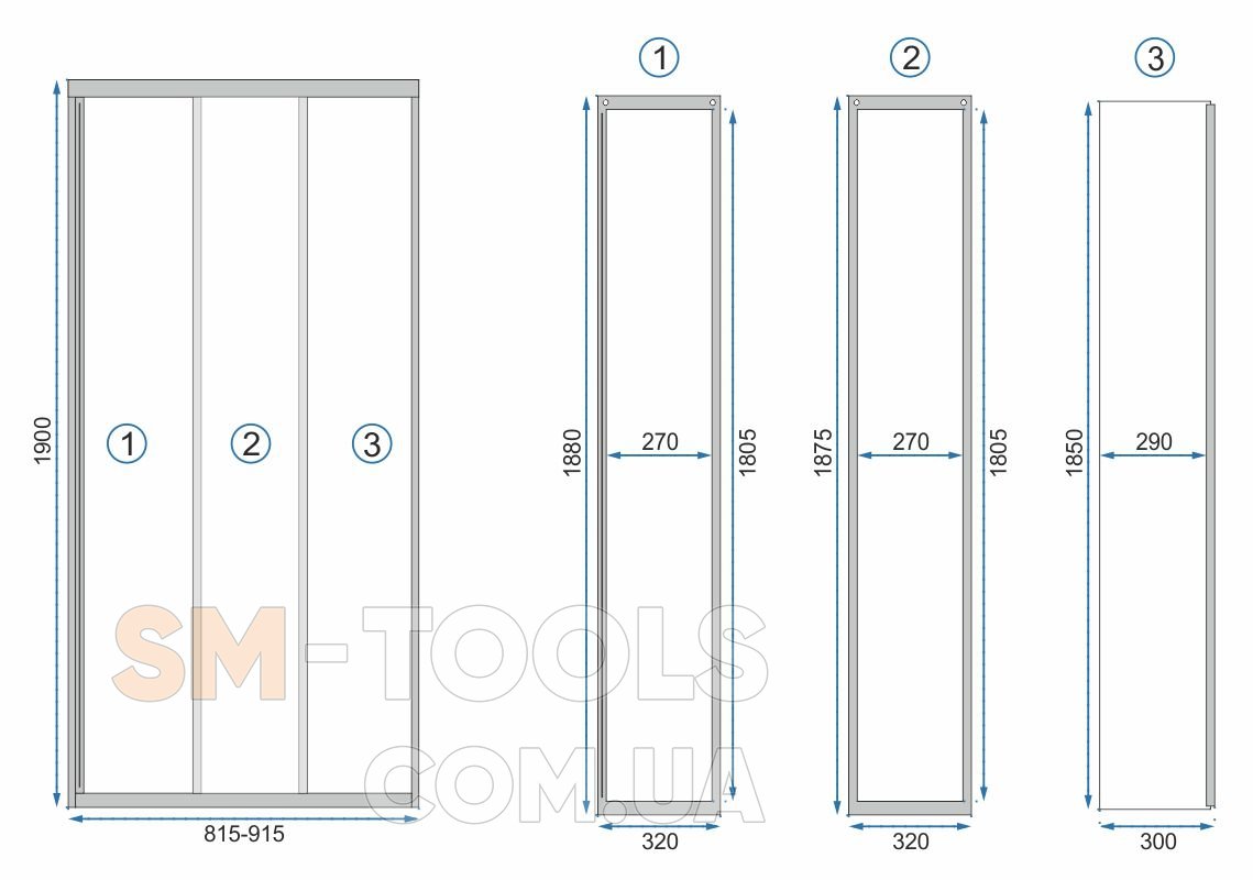 Примечания по монтажу : Трехсекционные двери: 1 фиксированная часть и 2 раздвижные части.
