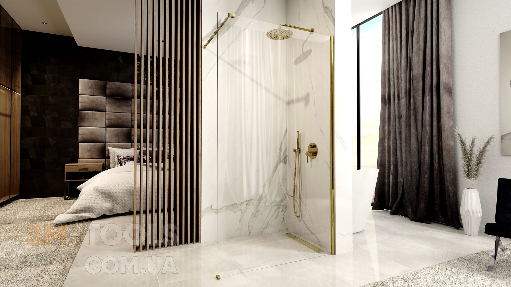 Представляем вам красивую, чрезвычайно функциональную и современную душевую стенку. Это продукт, который идеально заполнит пространство вашей ванной комнаты, сохранив безупречный внешний вид и эстетику интерьера. Стена приспособлена для установки на душевой поддон или с линейным сливом. Изготовлен из качественного закаленного стекла. Золотые элементы были покрыты лазером с четырехкратным покрытием эмалью высочайшего качества. Благодаря этой технологии алюминиевые элементы стекла защищены от коррозии, потускнения и обесцвечивания. Эстетичная и функциональная душевая кабина Rea Aero Z?ota 120 Walk-In - прекрасный элемент оборудования ванной комнаты, независимо от того, была ли она оформлена в классическом или современном стиле. Декоративная золотая отделка придает модели неповторимый характер. Стенка для входа имеет открытую конструкцию. Он изготовлен из прозрачного прозрачного стекла толщиной 8 мм. Изделие высотой менее 2 м отличается универсальным применением. Его могут успешно использовать как низшие, так и высшие люди. Благодаря специальной стадии производства он прочный и легко моется.