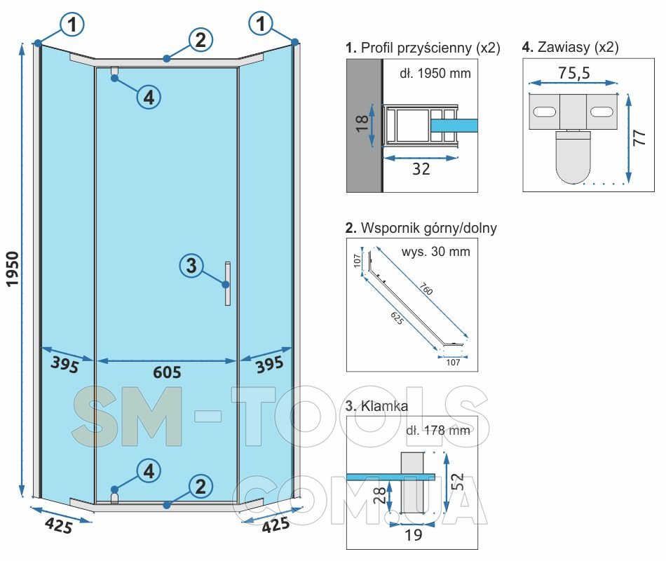 Описание Душевая кабина REA AXIN CHROM 90х90: