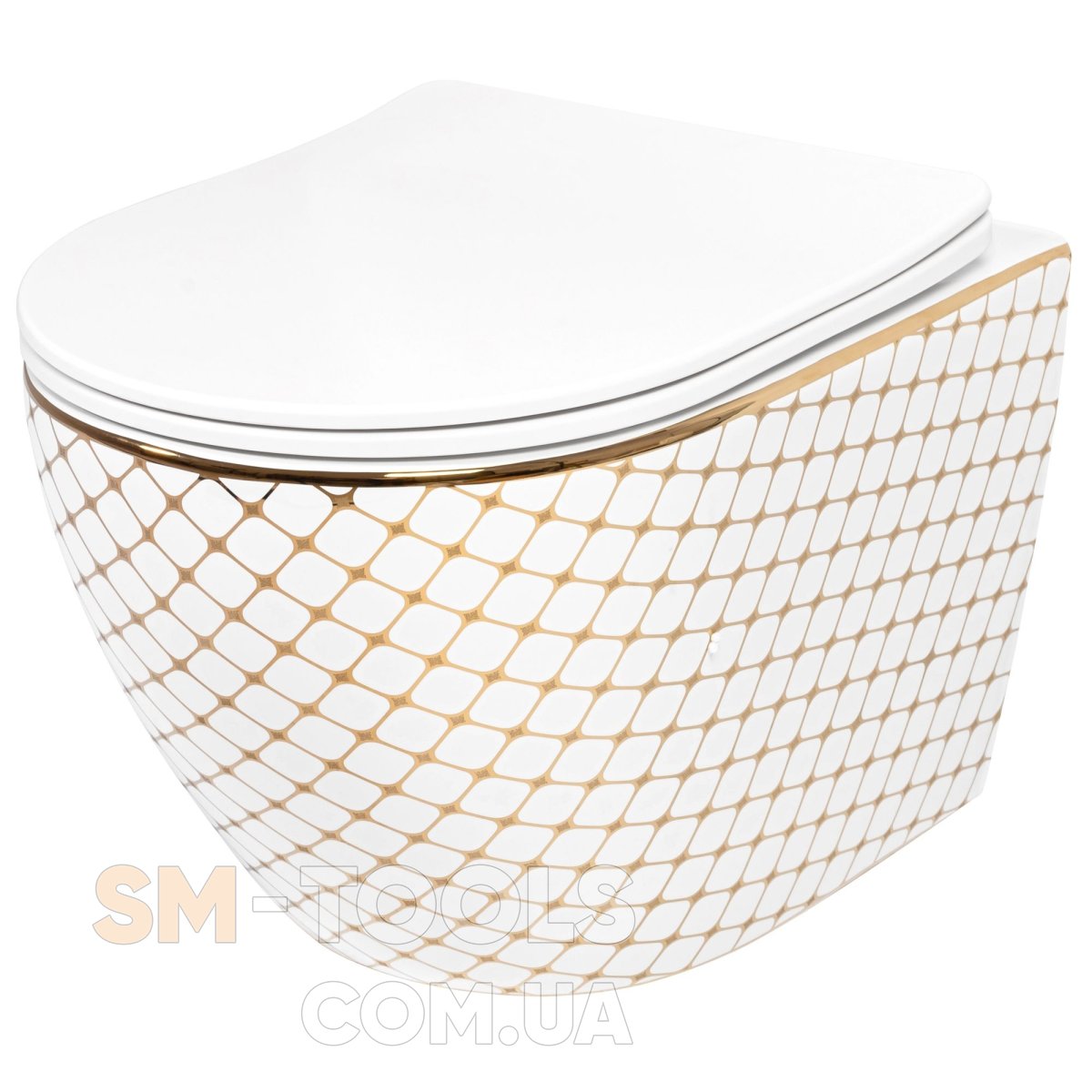 Подвесной унитаз REA CARLOS FLAT DIAMOND GOLD белый