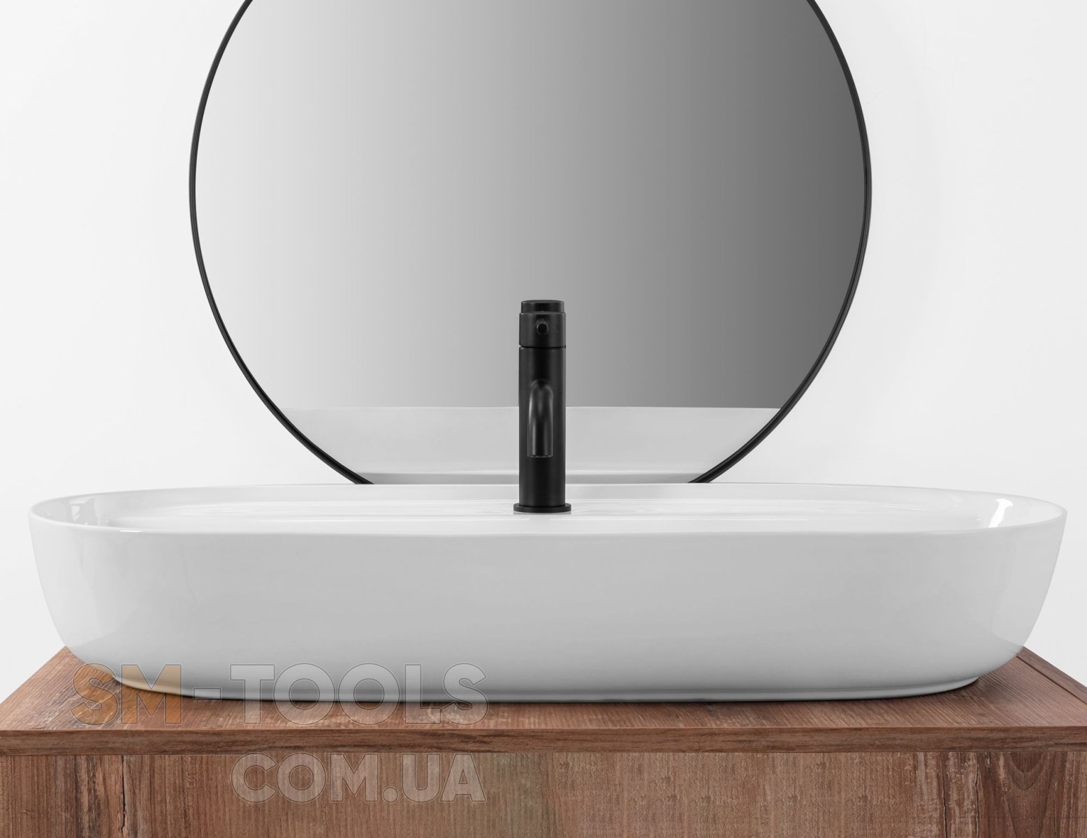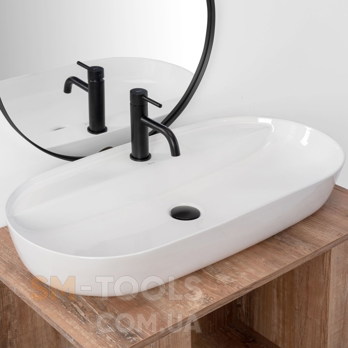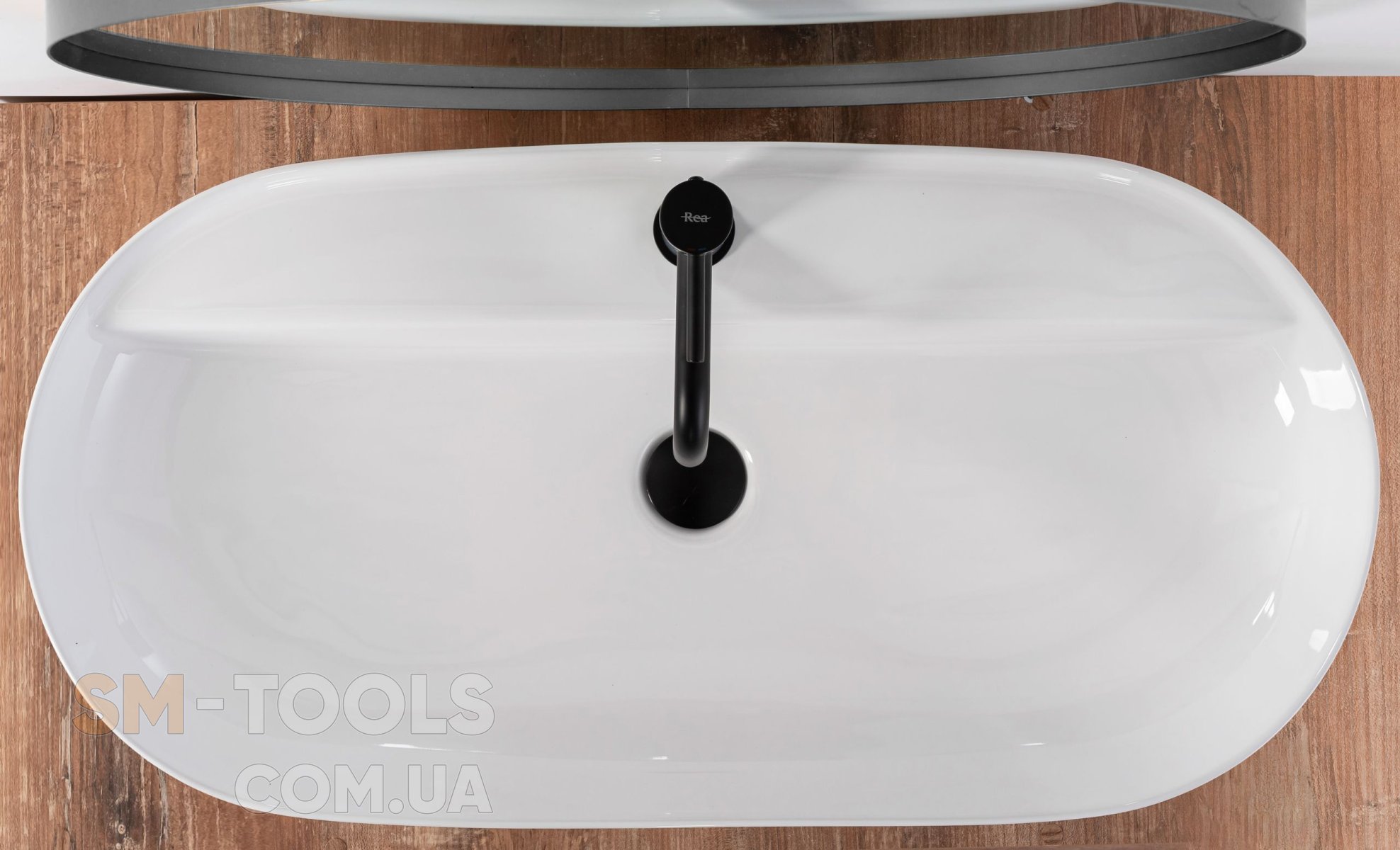 Умывальник Rea Aura интересной эллиптической формы прекрасно дополнит любой современный интерьер. Он приспособлен для установки на столешницу или шкаф.