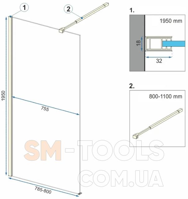 Характеристики Душевая стенка REA AERO GOLD 80: