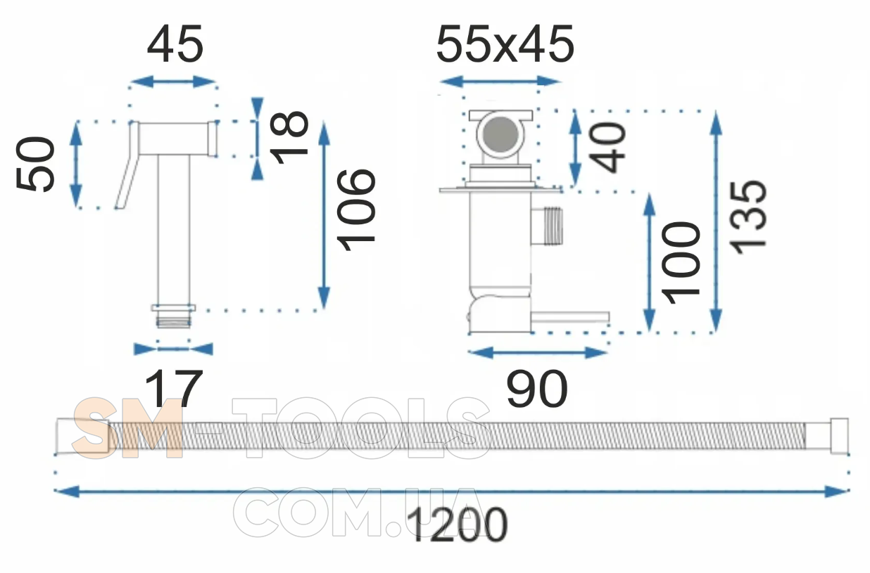 Характеристики Набор гигиенического душа REA FENIX CHROM хром: