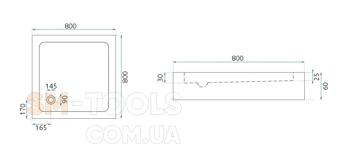 Размер поддона (см) : 80X80