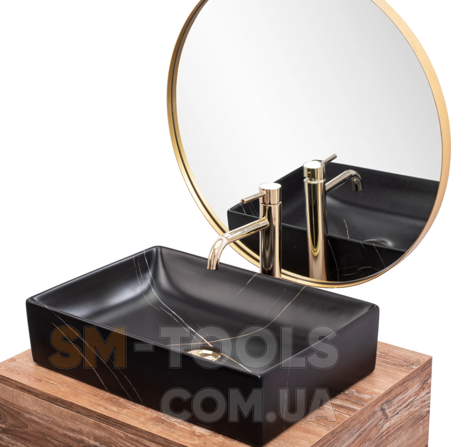 Описание Умывальник (раковина) REA INGA BLACK MARBLE MAT накладной черный матовый: