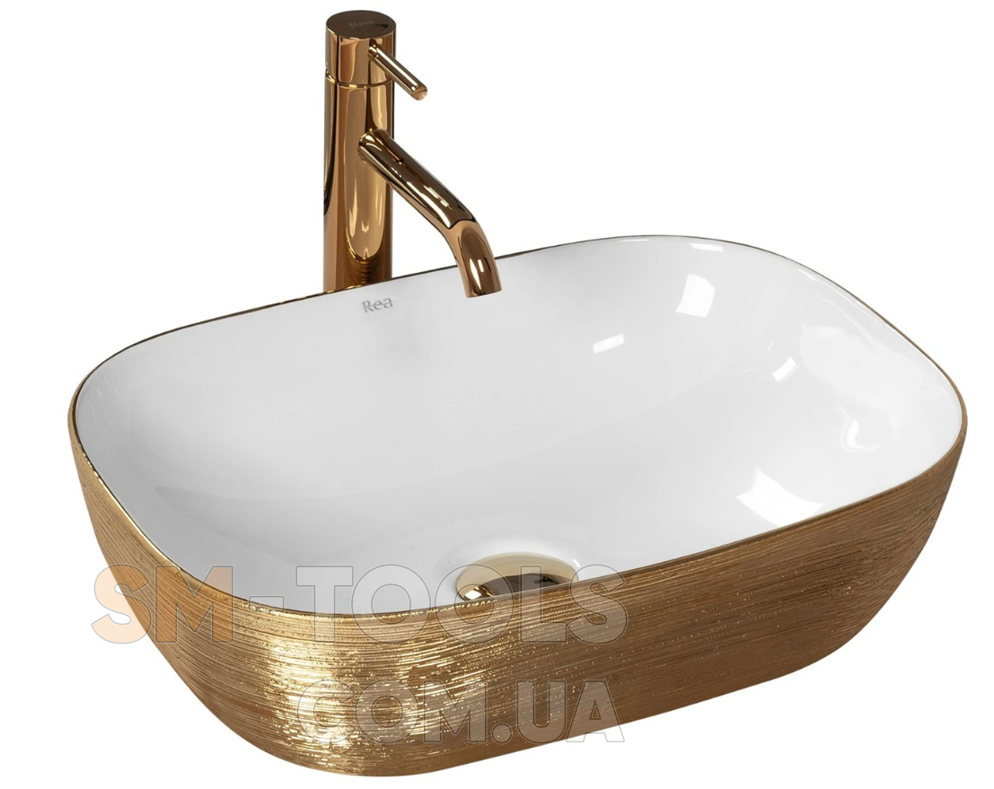 Умывальник (раковина) REA JENNY WHITE / GOLD накладной белый / золотой