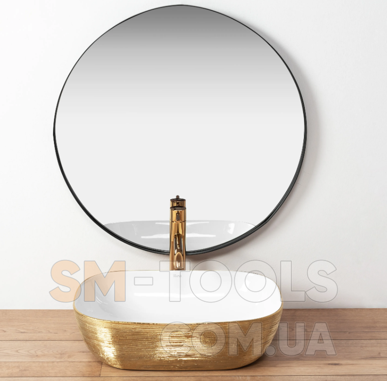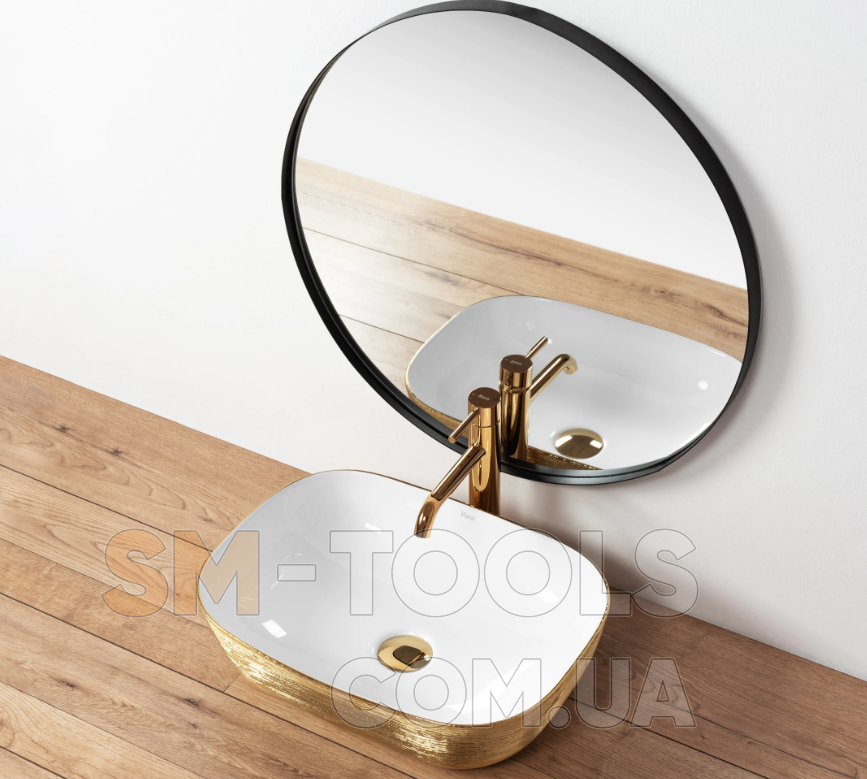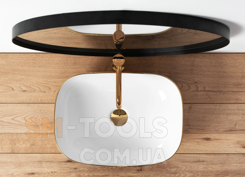 Описание Умывальник (раковина) REA JENNY WHITE / GOLD накладной белый / золотой: