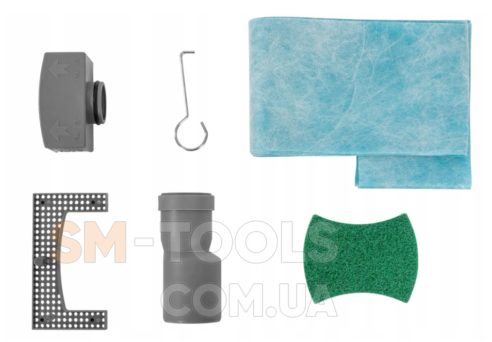 Комплектация : регулируемые ножки, сифон, манжет Dry-Fix, фильтр-корзина, инструкция по эксплуатации, губка, крючок