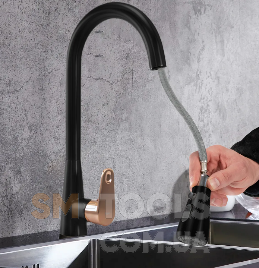 Описание Смеситель для кухни REA MILD BLACK ROSE GOLD черныйрозовое золото: