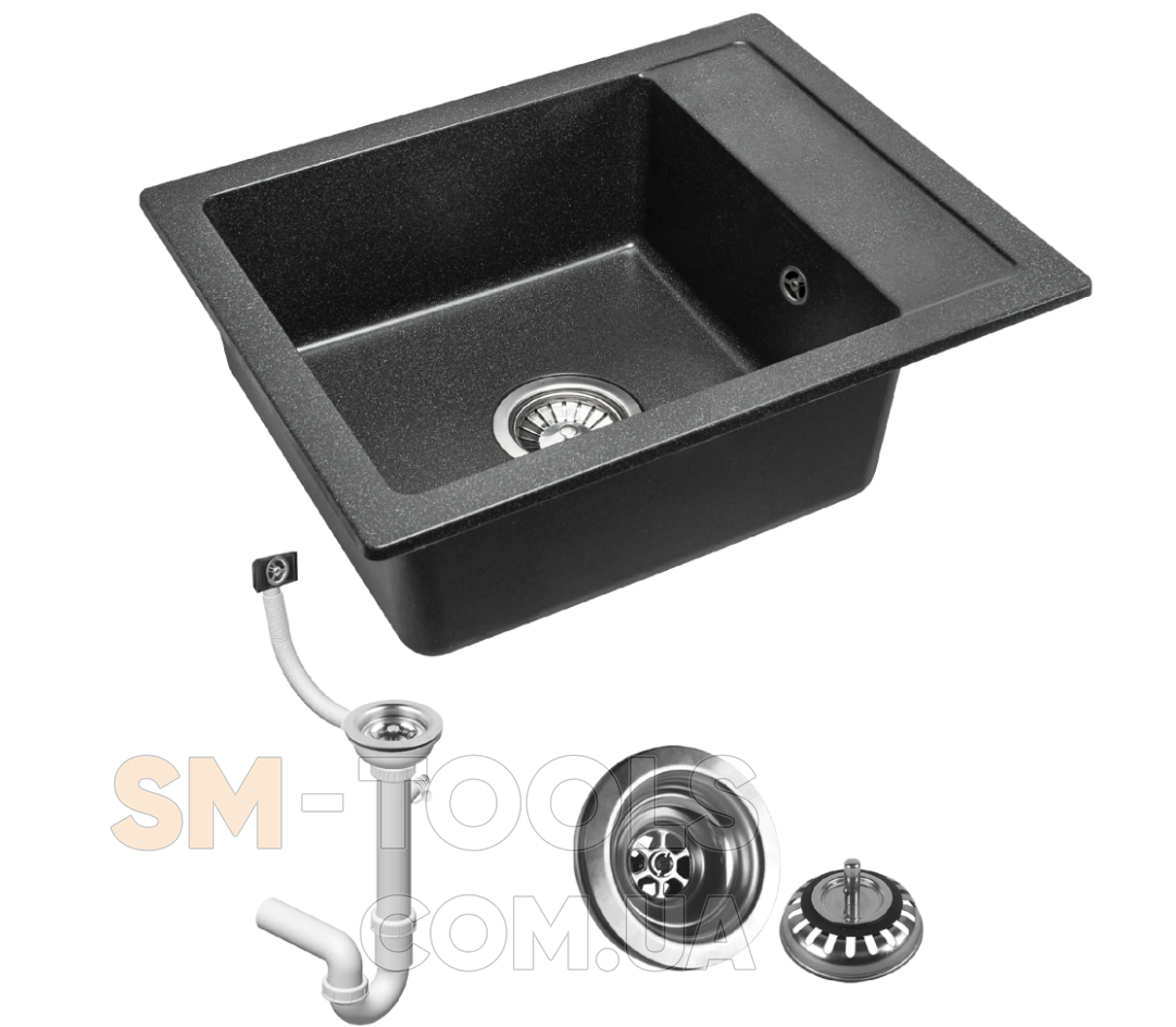 В комплекте с мойкой : сифон с решеткой, шланг соединения с переливом