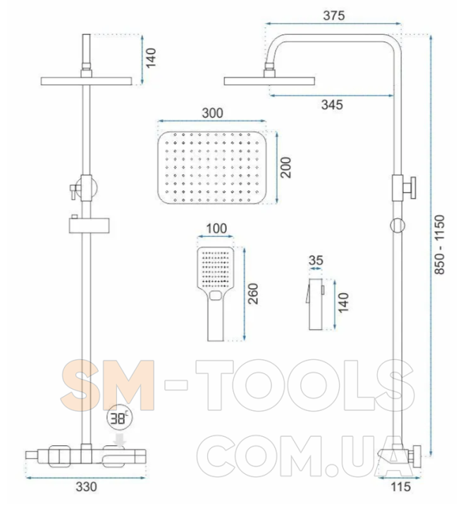Характеристики Душевой гарнитур REA ROB CHROM с термостатом и изливом:
