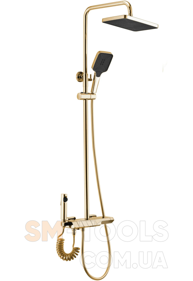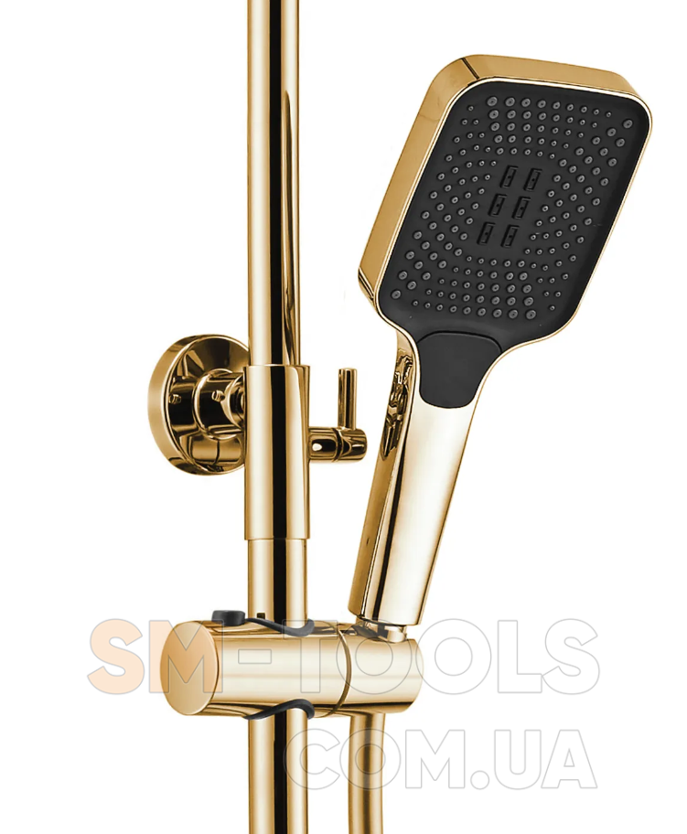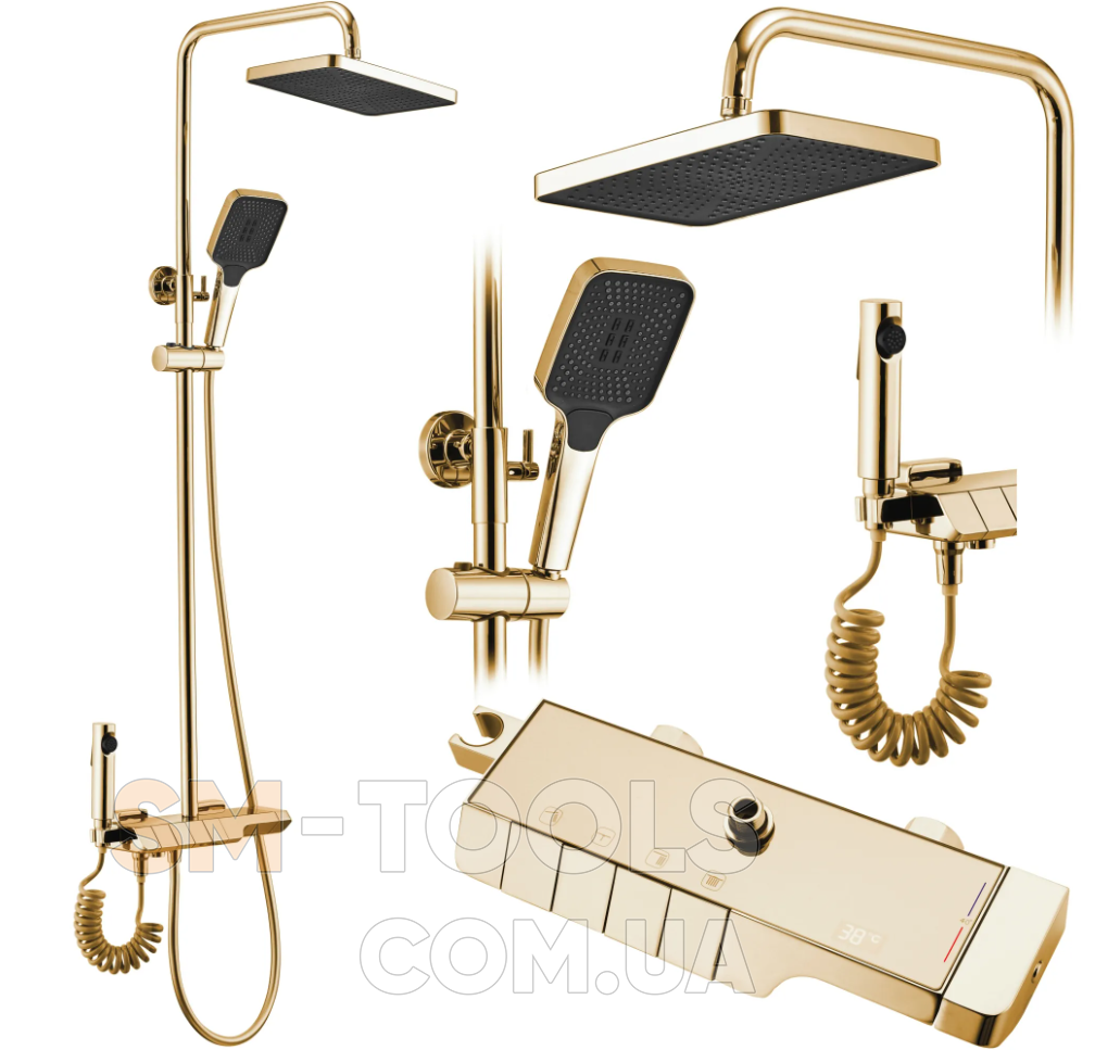 Описание Душевой гарнитур REA ROB GOLD с термостатом и изливом: