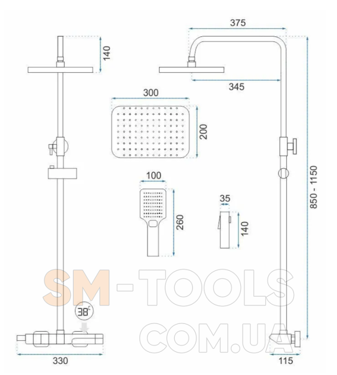 Характеристики Душевой гарнитур REA ROB GOLD с термостатом и изливом:
