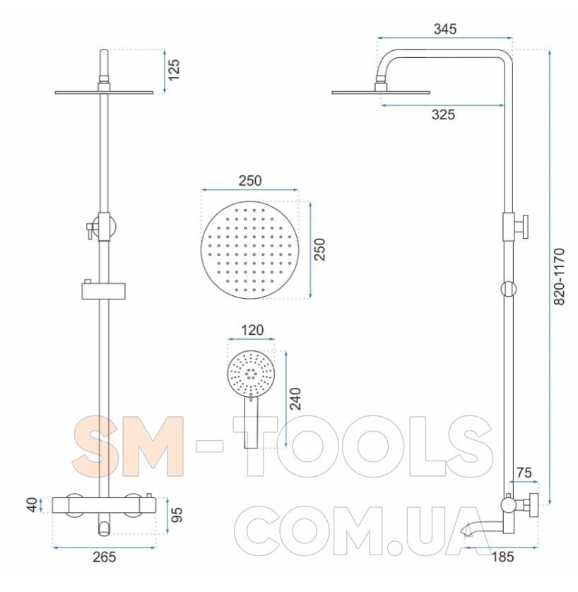 Характеристики Душевой гарнитур REA LUNGO WHITE с термостатом и изливом: