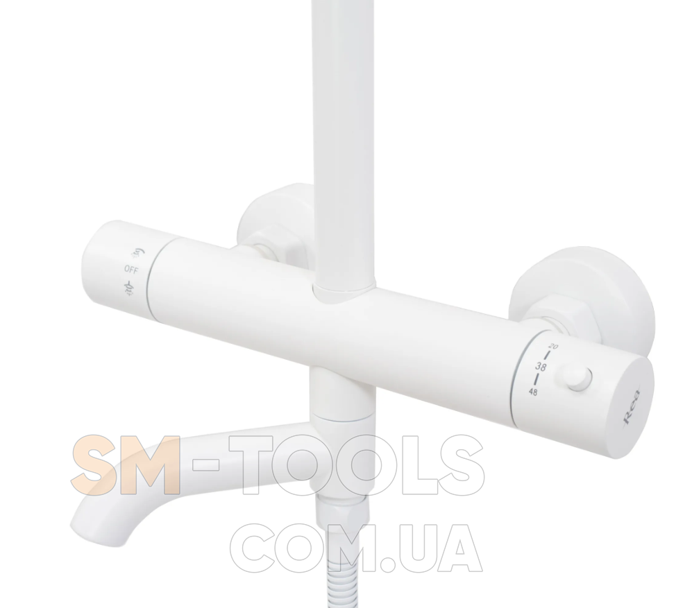Описание Душевой гарнитур REA LUNGO WHITE с термостатом и изливом: