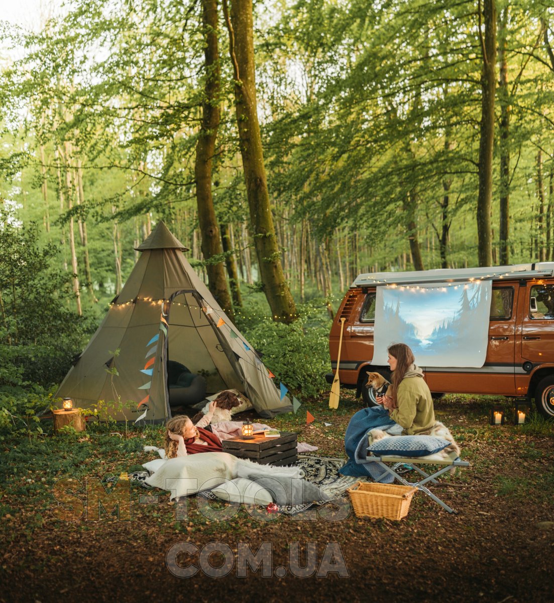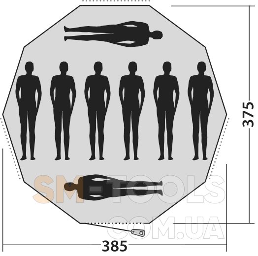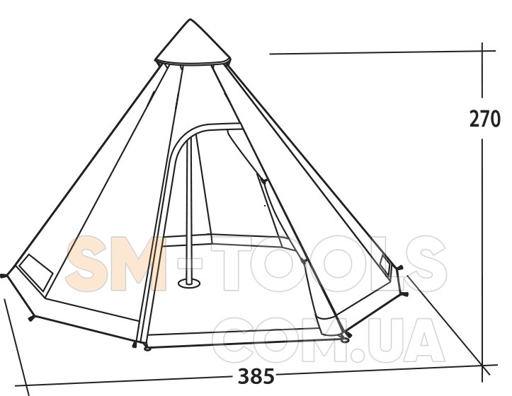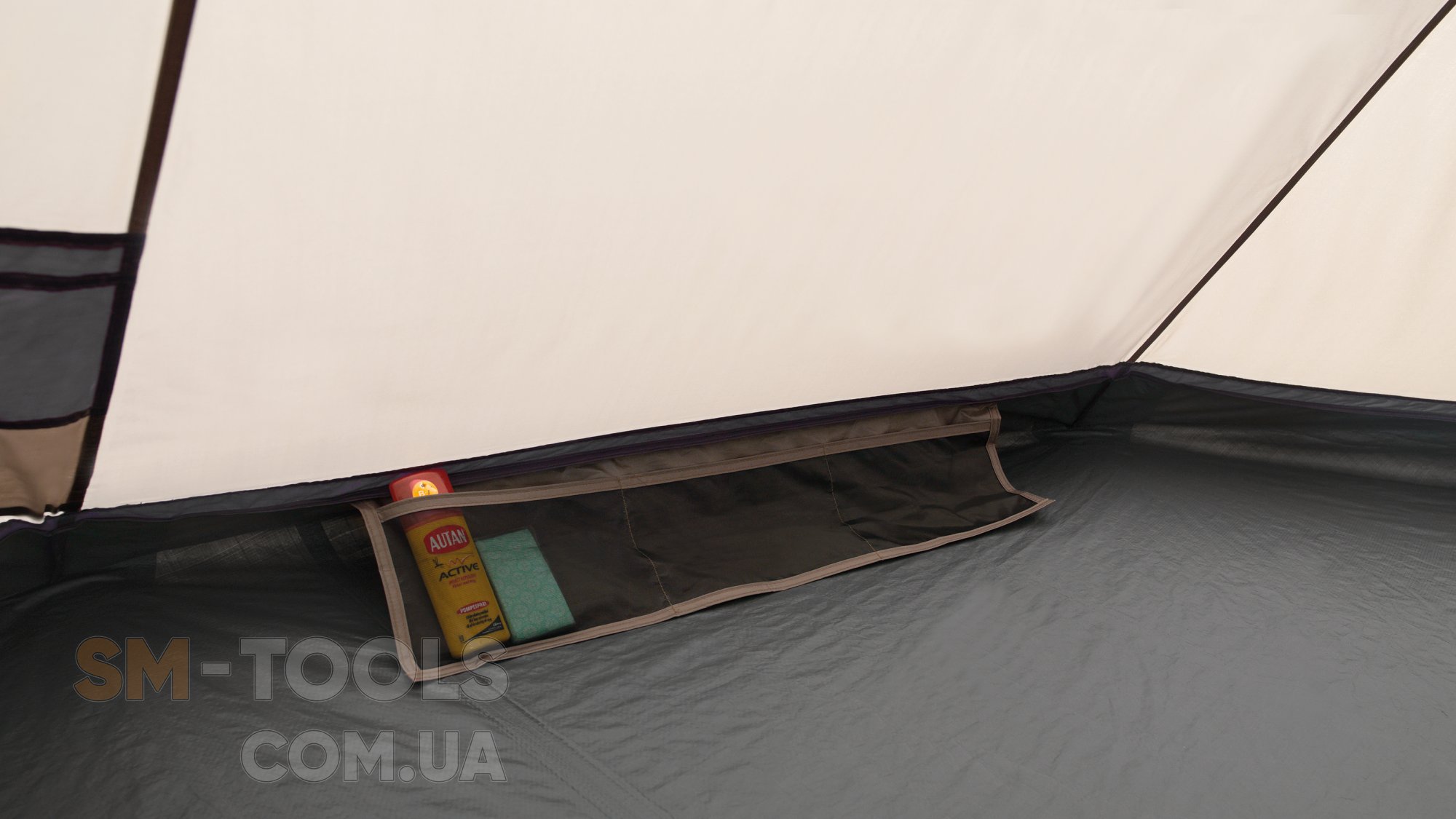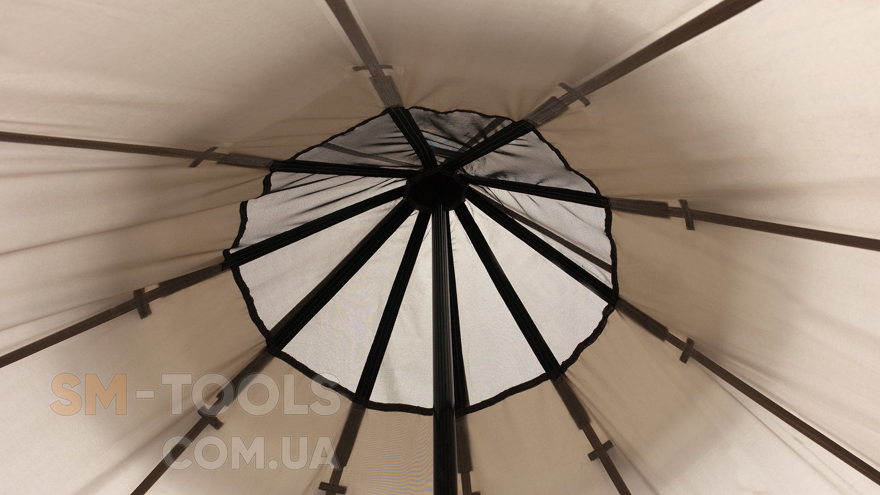 Easy Camp Moonlight Tipi Grey (120381) - большой восьмиместный глемпинговый палатка, выполненная в форме шатра со стальным столбом в центре. Конструкция палатки обеспечивает большое внутреннее пространство для яркого отдыха и развлечений под открытым небом с семьей и друзьями. Легкий доступ к палатке выполняется сквозь плоский вход с двухслойными складными дверцами на молниях: основными тканевыми и полностью сетчатыми вспомогательными. Сетчатое вентиляционное отверстие под потолком имеет защитный капюшон с пластиковым кольцом для удержания формы, а нижние вентиляционные отверстия способствуют достаточной вентиляции и легко регулируют поток свежего воздуха. Особенности: Hydrostatic Head 3000 mm - ткань палатки имеет полиуретановое покрытие, которое обеспечивает водонепроницаемость 3000 мм вод. ст.