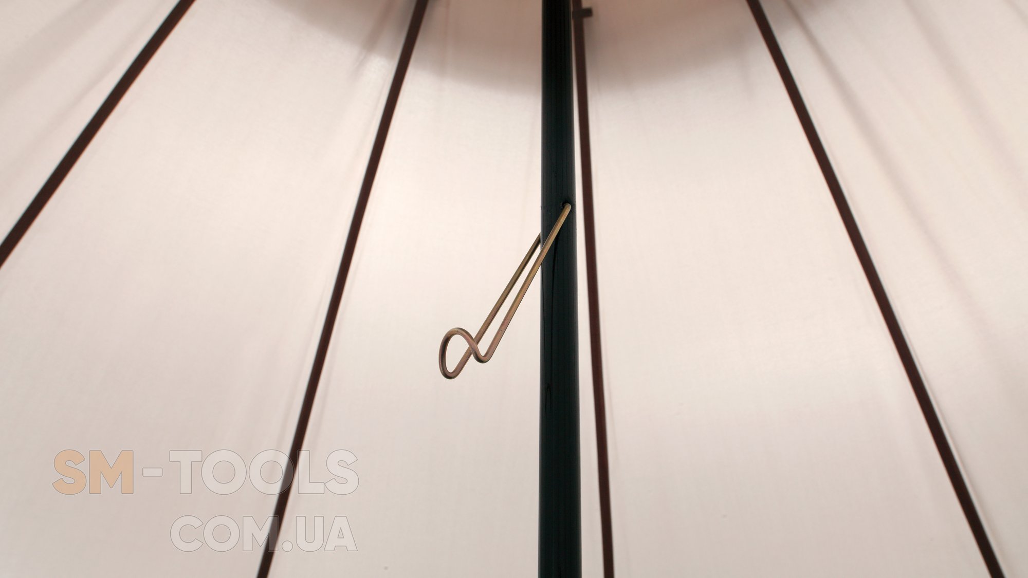 Стальная  ;опора способствует быстрой установке и обеспечивает устойчивость палатки.