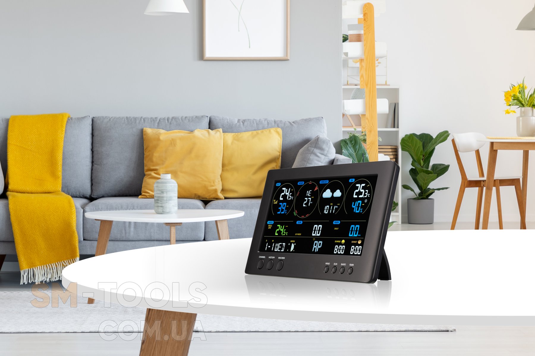 - Станция поддерживает до 7 дополнительных беспроводных датчиков температуры и влаги с радиусом действия до 150 метров арт. №: 7009999 (в комплект не входят).