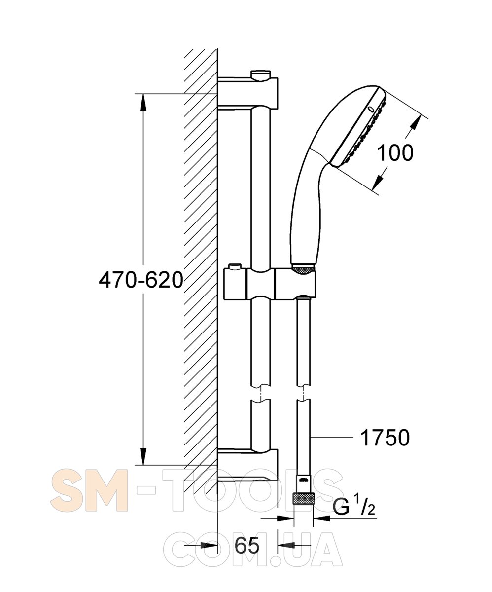 Набор состоящий из: Ручной душ Vitalio Start 100 с 2 типами струи (27946) Душевая штанга Vitalio Universal, 600 мм (27724000) Душевой шланг Vitalioflex Trend 1750 мм 1/2" x 1/2" (28742)Характеристики Душевой гарнитур со штангой, 2 режима струи Grohe QuickFix Vitalio Start 100 Black 279482430