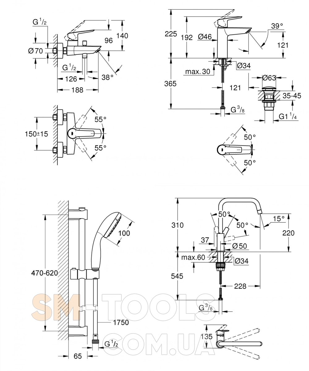 Описание Комплект смесителей для ванной комнаты и кухни Grohe QuickFix Start Black UA303301MK